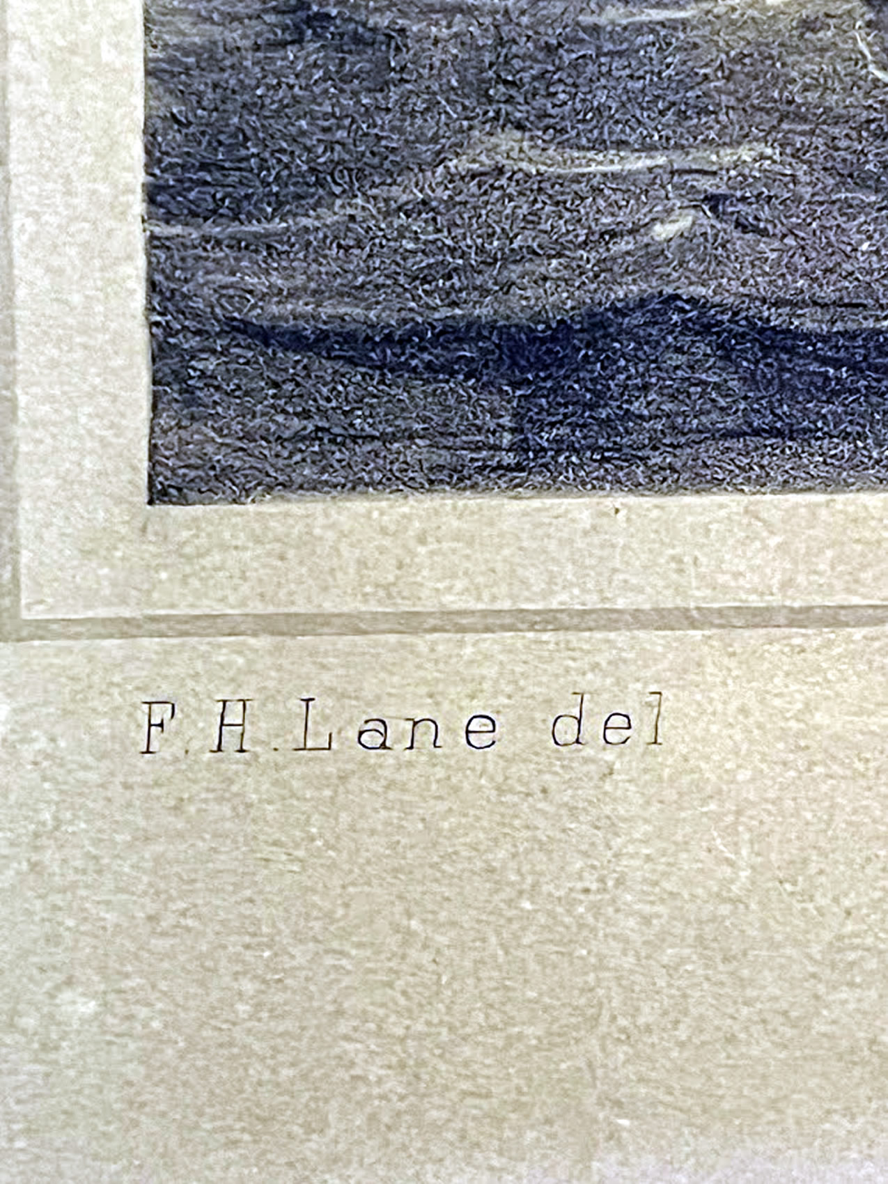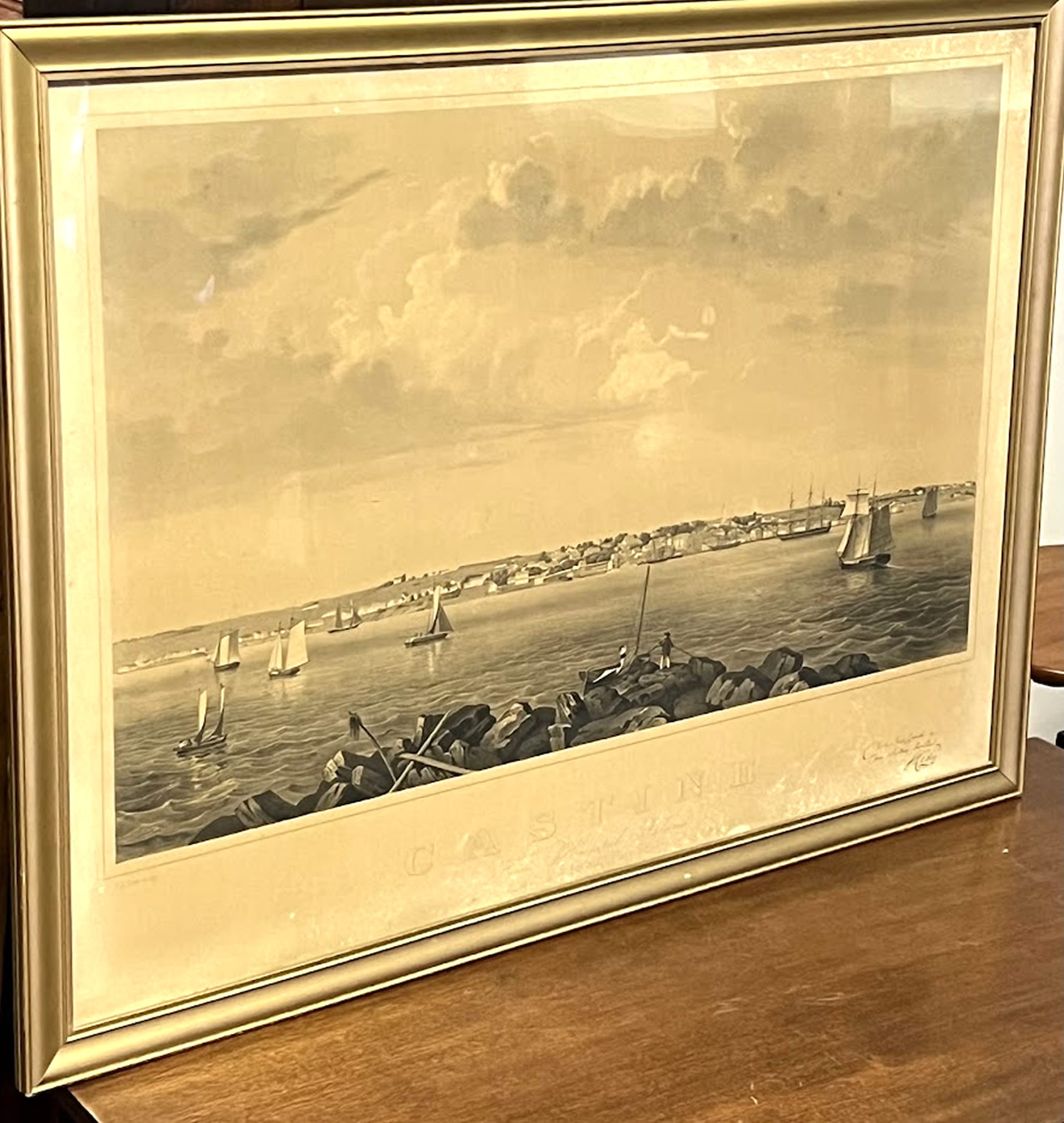 Original lithograph, (A view of Castine from Hospital Island) by Fitz Henry Lane, 1855, 26x35in.