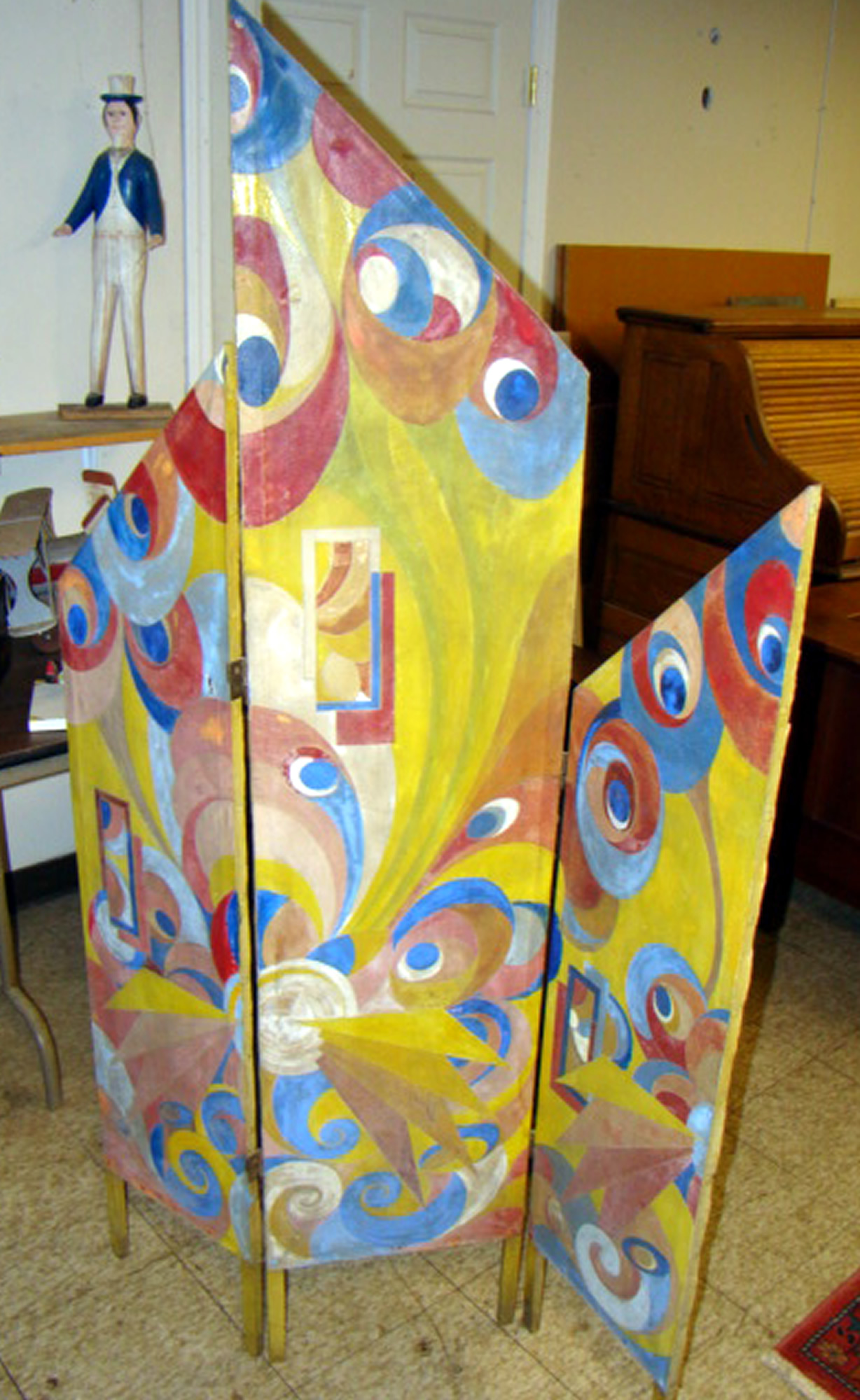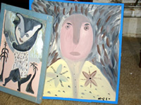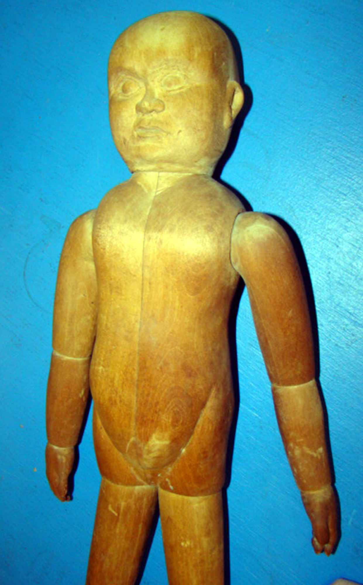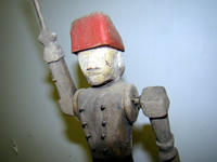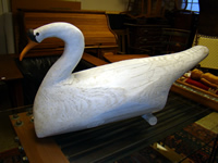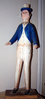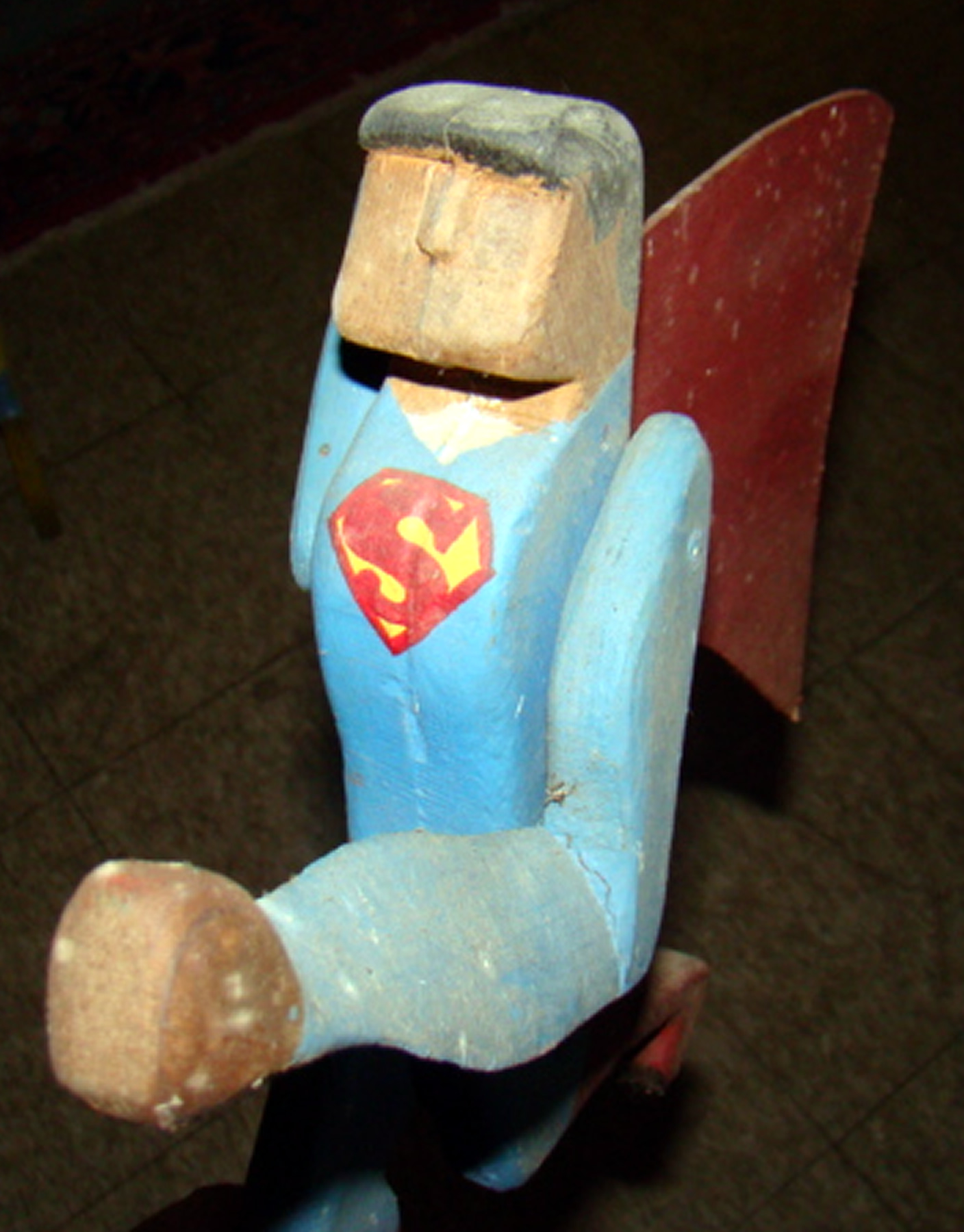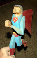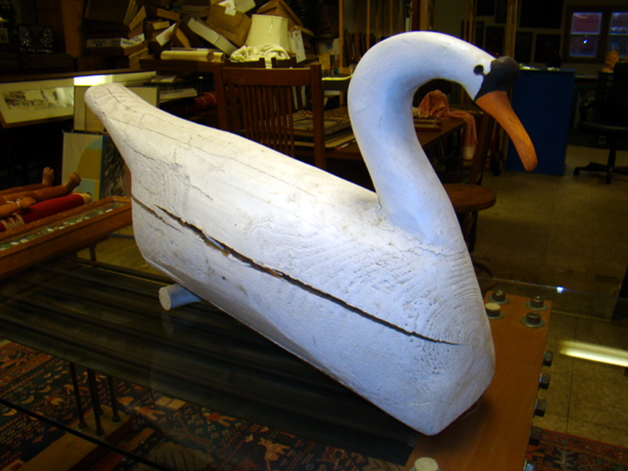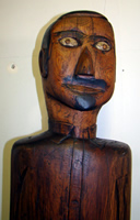 Spectacular hand carved cuckoo clock with eagles, etc. by Morton Riddle ; diorama by Howard Finster [1916-2001] , 4½" x 30", wood and painted glass; White Star Line wooden steam ocean liner Arabic ; folk art wooden man sculpture, 38" tall; wooden carved fully jointed doll by Morton Riddle featured in "Pioneers in Paradise Show 1984" ; early soldier whirligig ; two (2) prints by Christophe Leroux titled "Chazz Janne" and Chazz Rouge II, signed and numbered; folk art wooden "Uncle Sam" figure, 25" tall; 20th c. Superman whirligig; three (3) carved wooden fully jointed dolls by Morton Riddle ; large model of the Golden Gate Bridge , 72" long, used in the "Pioneers in Paradise Folk Art Show" in 1984; large white swan carved by David Rust [b.1908] , also displayed at the "Pioneers Show 1984, 36" long, 20" high; two (2) paintings on plywood by Mose Tolliver [1919-2006] , man with flowers and fawn; Morton Riddle doll in box carving; sculpture by Robert Gilkerson with eyes popping out; wooden bi-plane whirligig; plus more !!!