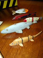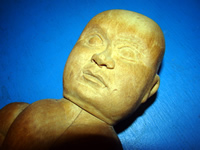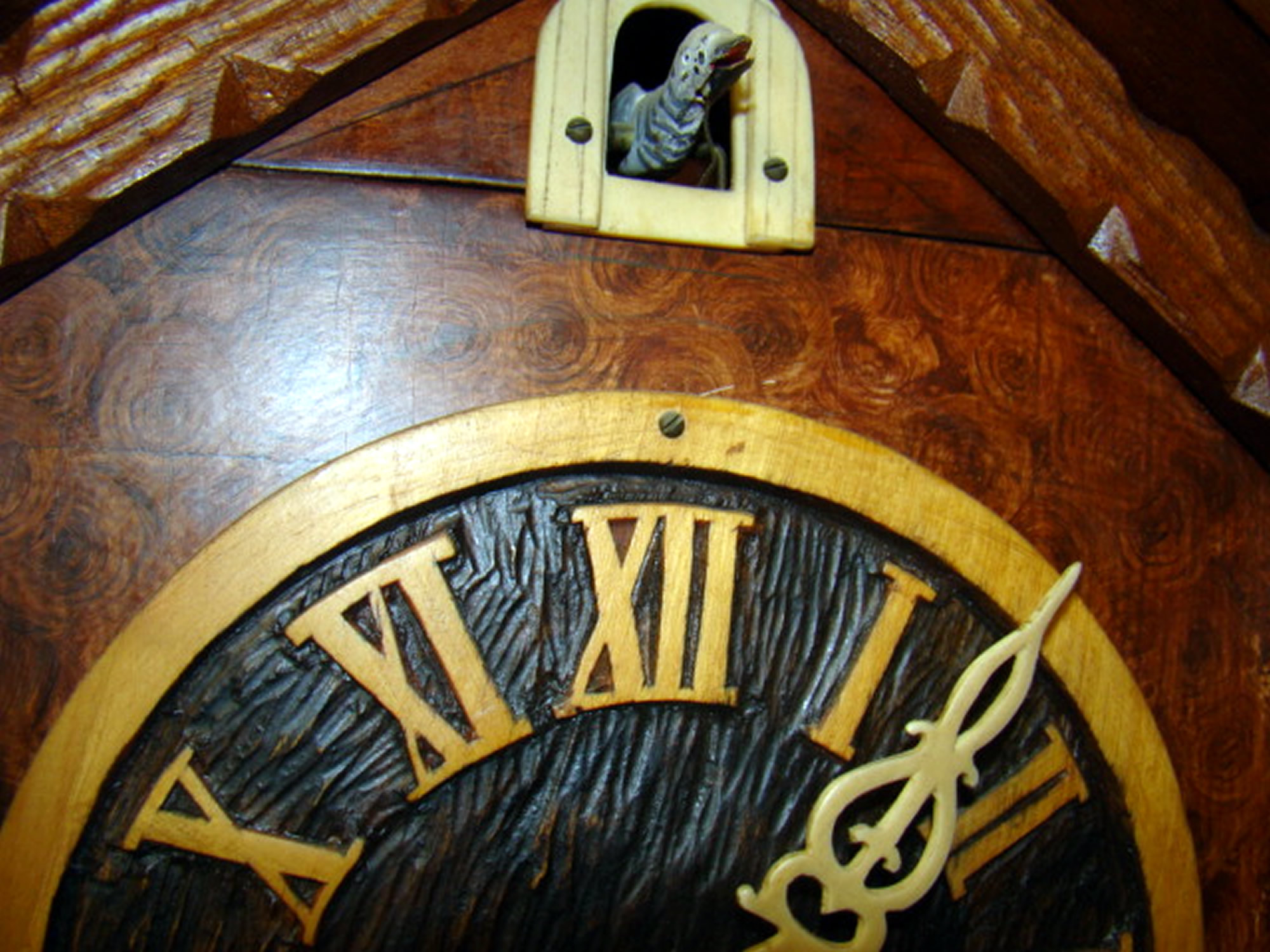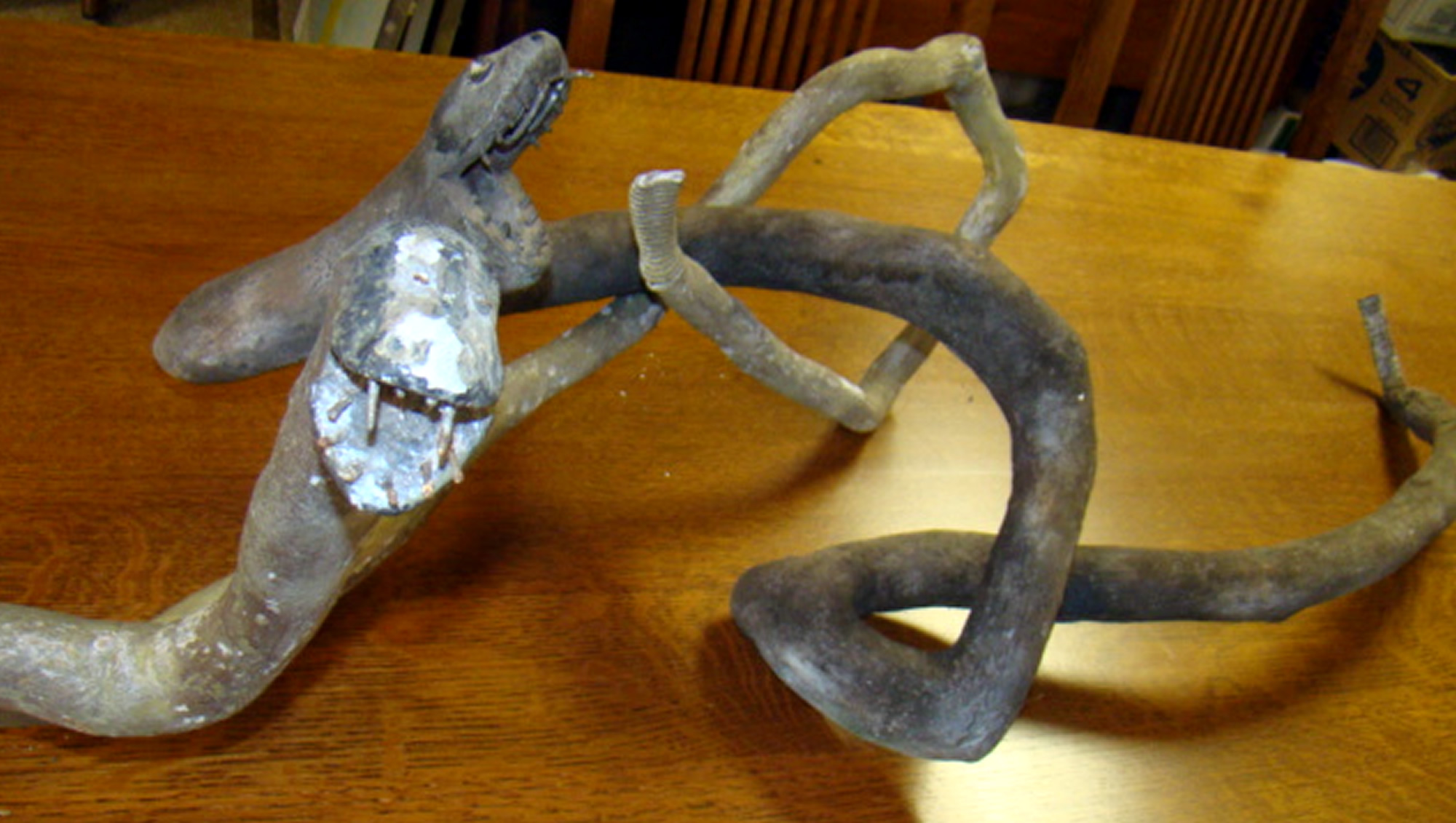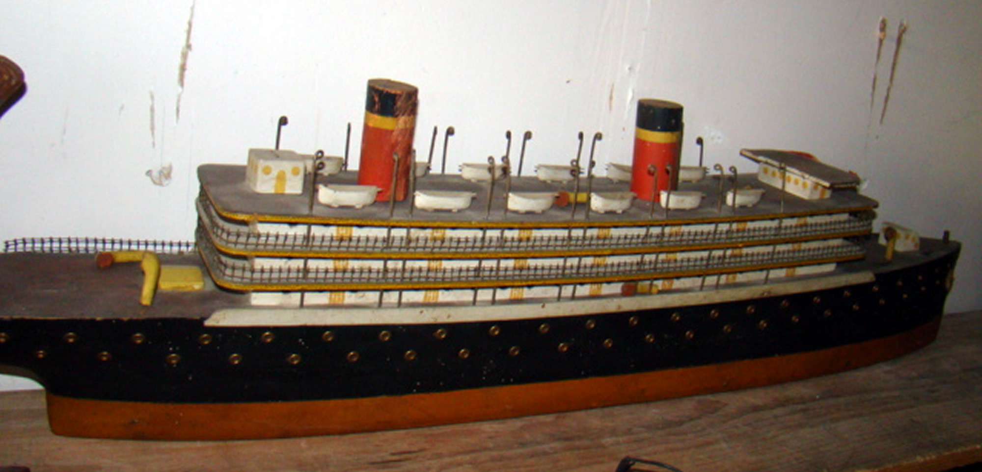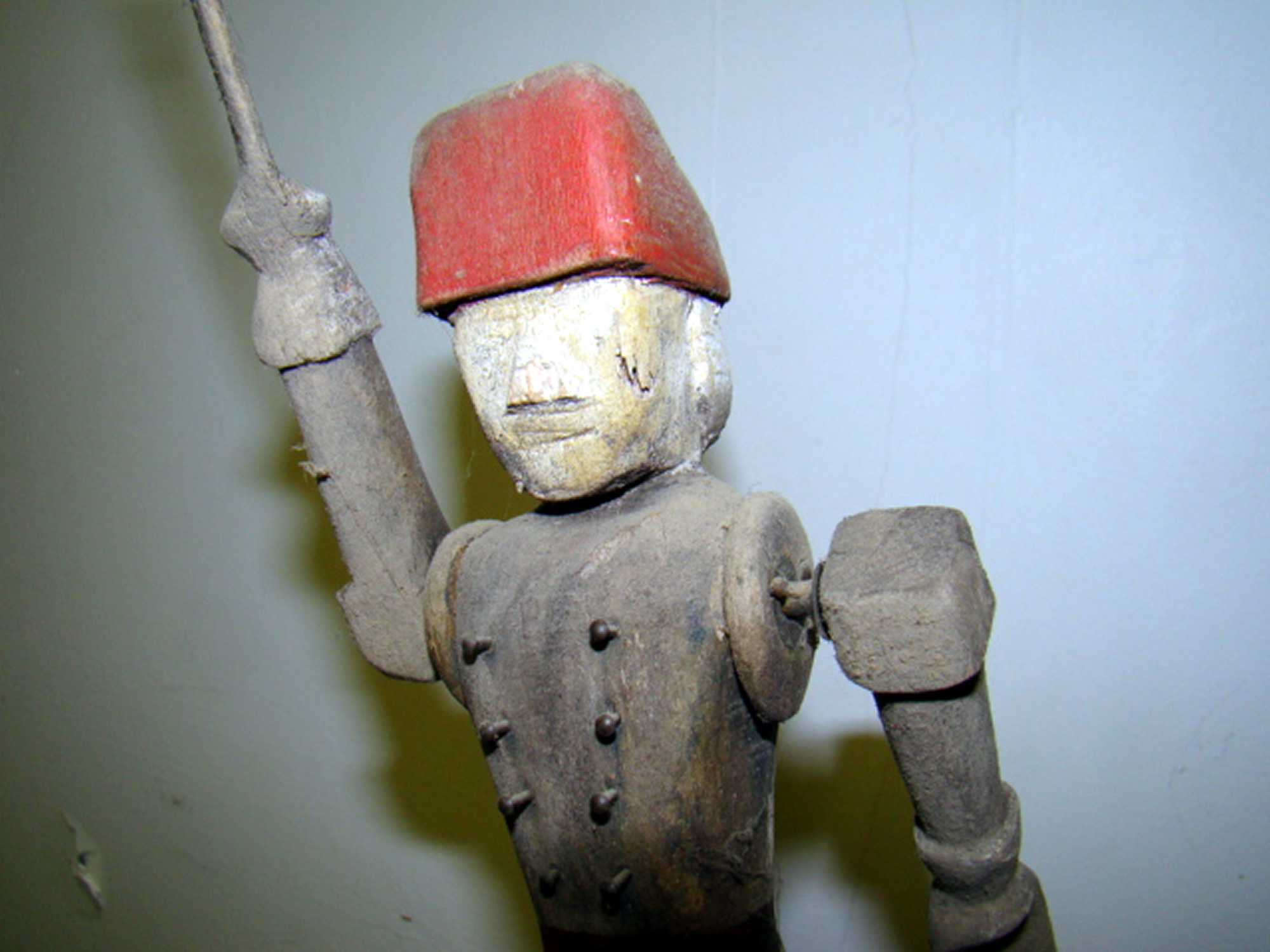 Spectacular hand carved cuckoo clock with eagles, etc. by Morton Riddle ; diorama by Howard Finster [1916-2001] , 4½" x 30", wood and painted glass; White Star Line wooden steam ocean liner Arabic ; folk art wooden man sculpture, 38" tall; wooden carved fully jointed doll by Morton Riddle featured in "Pioneers in Paradise Show 1984" ; early soldier whirligig ; two (2) prints by Christophe Leroux titled "Chazz Janne" and Chazz Rouge II, signed and numbered; folk art wooden "Uncle Sam" figure, 25" tall; 20th c. Superman whirligig; three (3) carved wooden fully jointed dolls by Morton Riddle ; large model of the Golden Gate Bridge , 72" long, used in the "Pioneers in Paradise Folk Art Show" in 1984; large white swan carved by David Rust [b.1908] , also displayed at the "Pioneers Show 1984, 36" long, 20" high; two (2) paintings on plywood by Mose Tolliver [1919-2006] , man with flowers and fawn; Morton Riddle doll in box carving; sculpture by Robert Gilkerson with eyes popping out; wooden bi-plane whirligig; plus more !!!