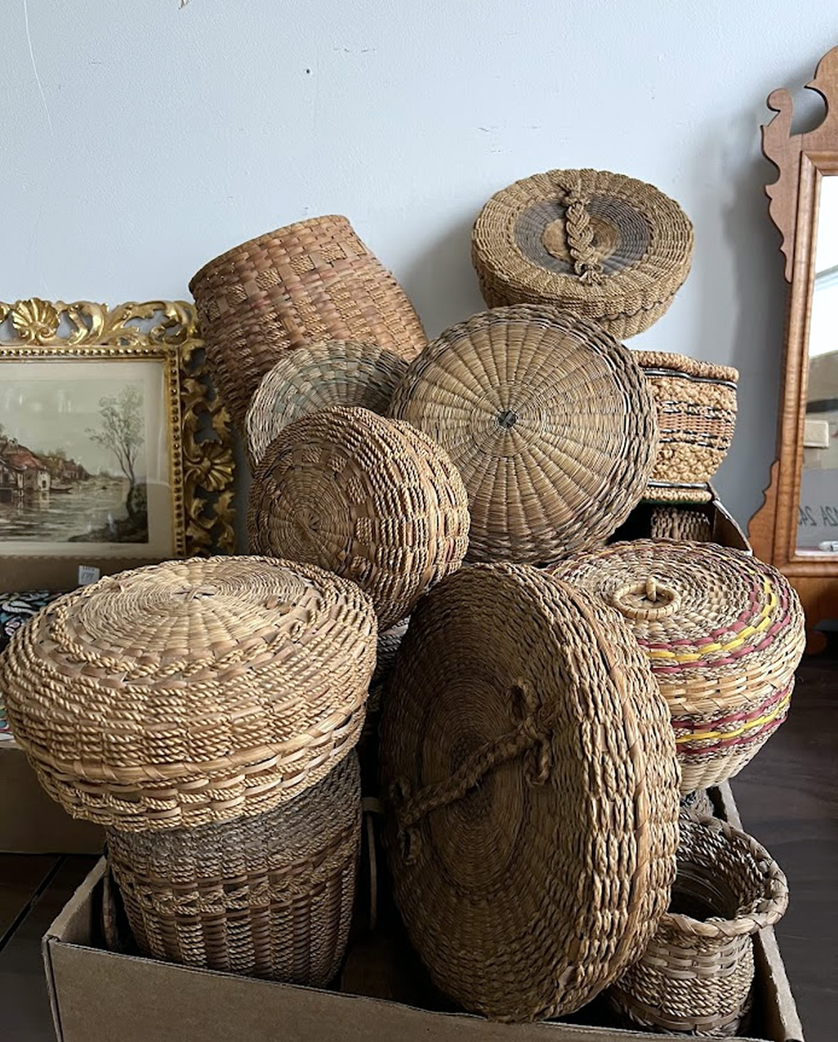 Collection of Native American sweetgrass baskets, collected in Maine |