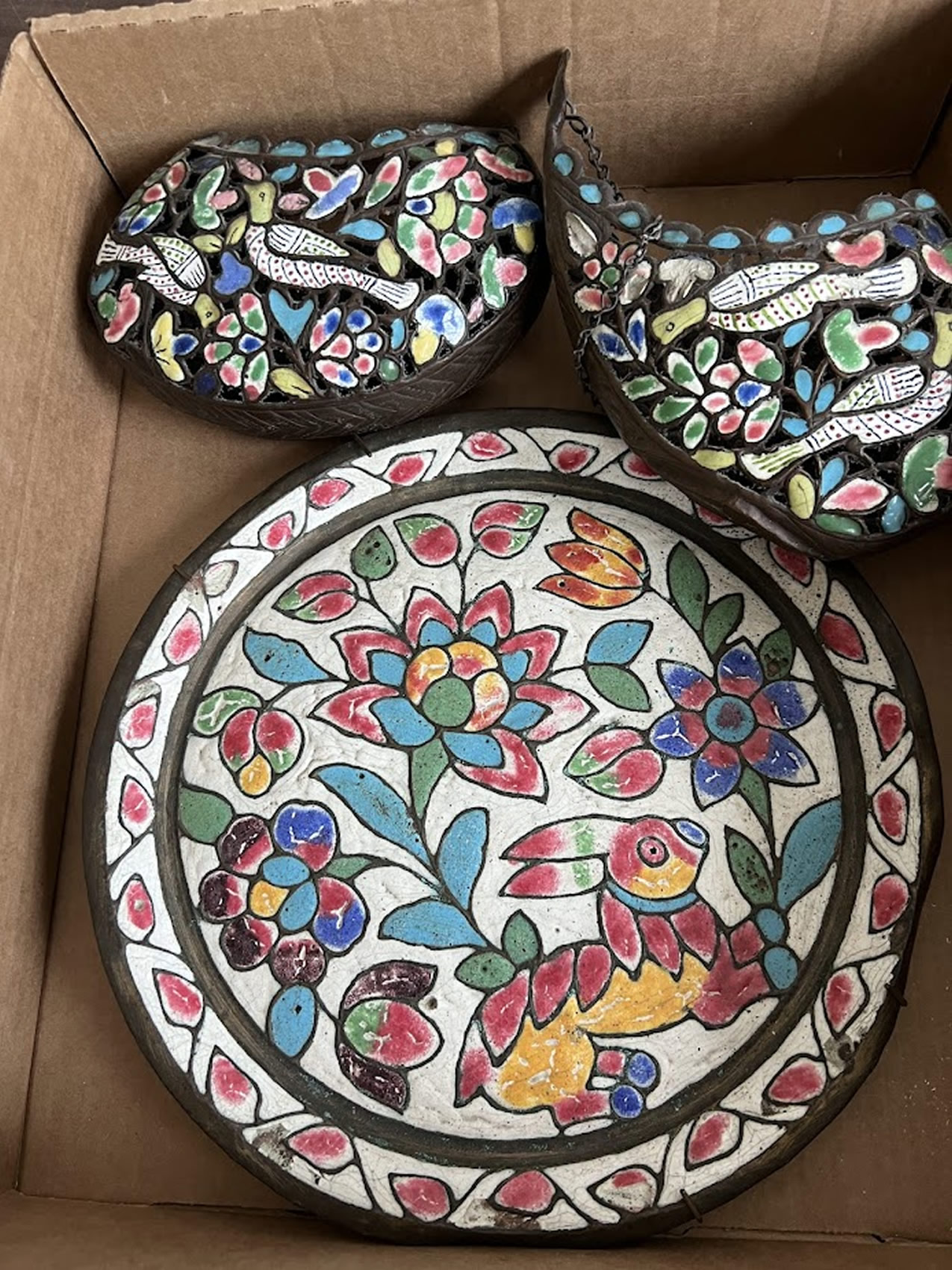 Persian enamel plate and purses |