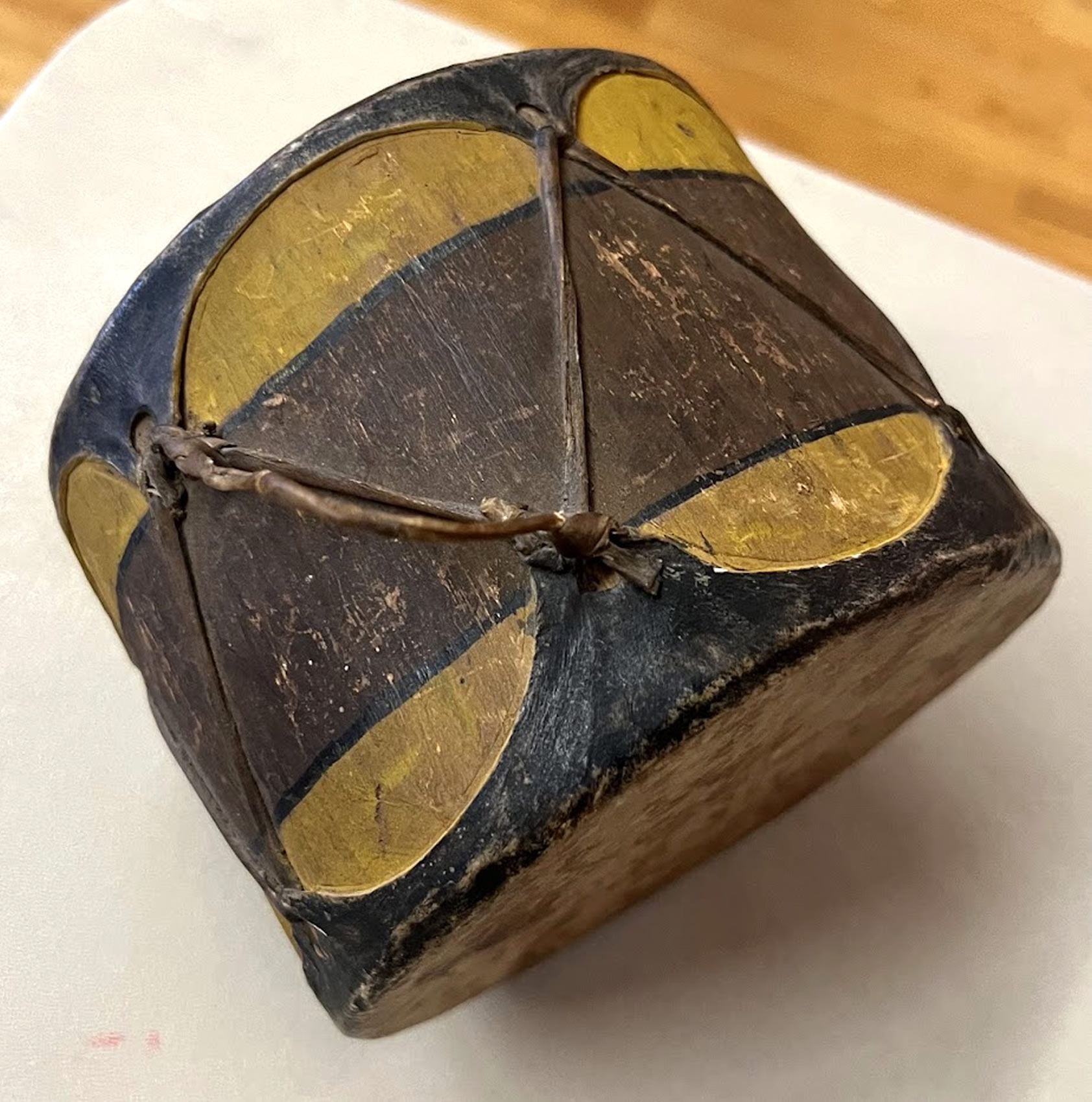| Native American painted drum in original okra paint, 6in. |
