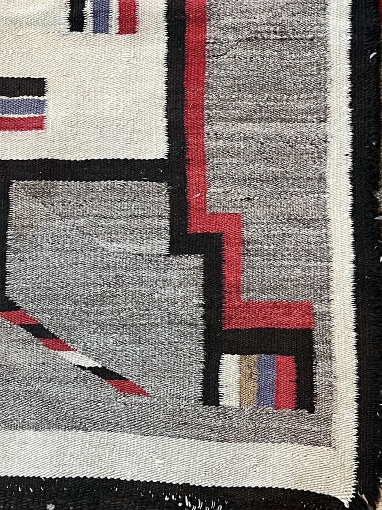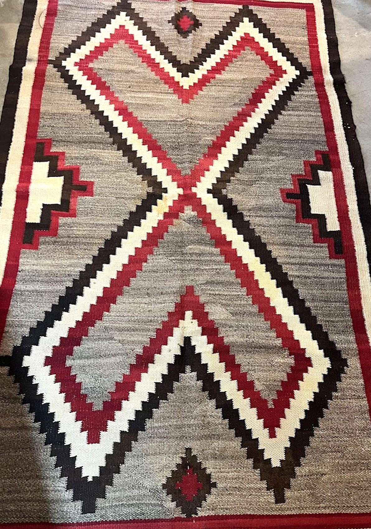 | . Early Native American Navajo woven rug, 31.5x 40.5 in. |