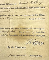 | Josiah Hook's original appointment signed by President Thomas Jefferson 1802 |