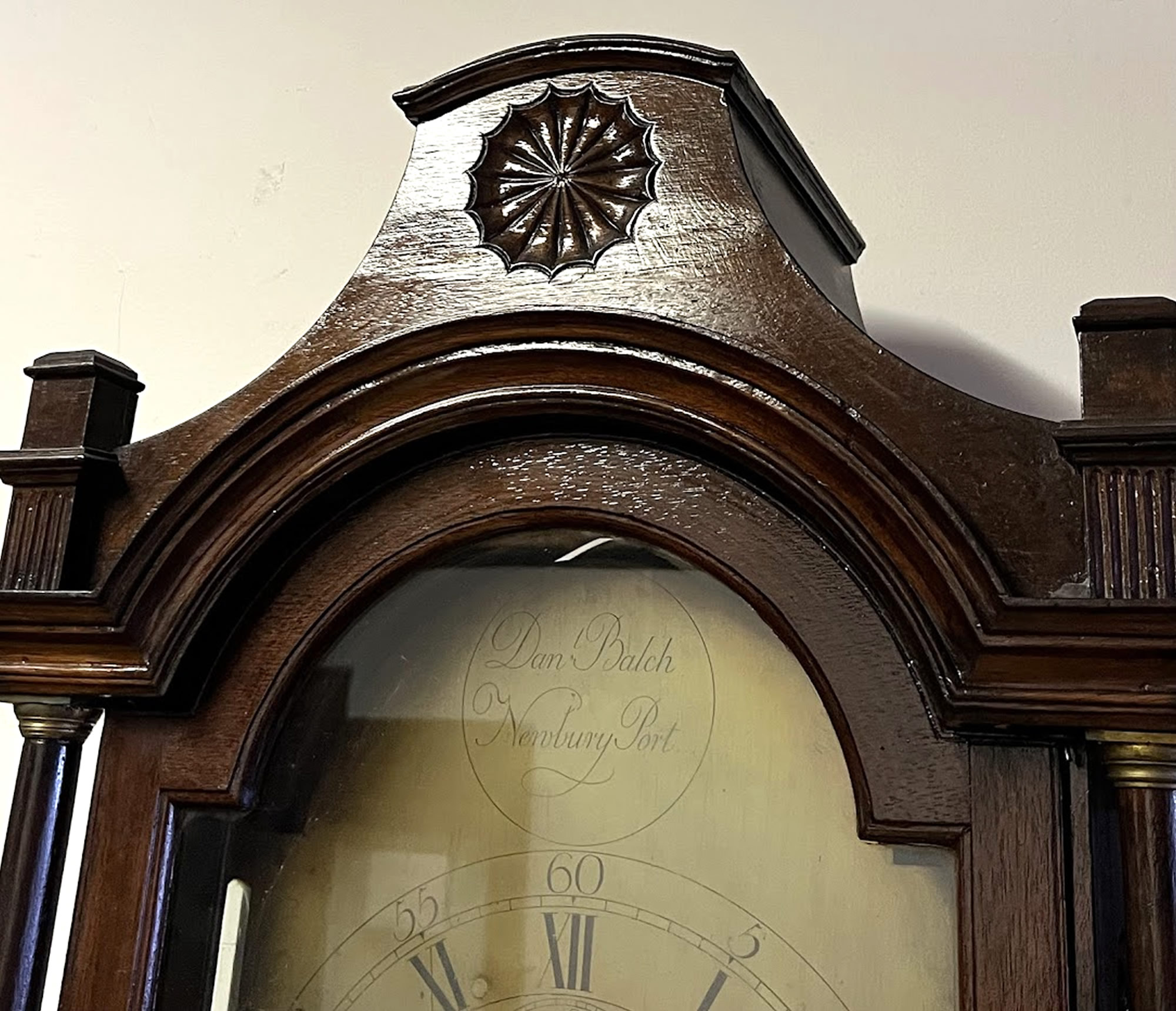 Rare coffin top tall clock by Daniel Balch, (1761-1835) Newburyport, Ma.