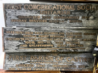 | Original sign from the Castine Meeting House, 3 pieces, needs restoration. |
