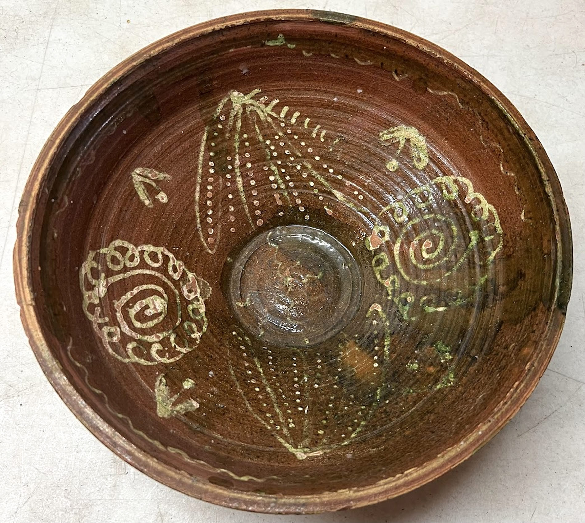 Early slipware bowl, 11.5 in.