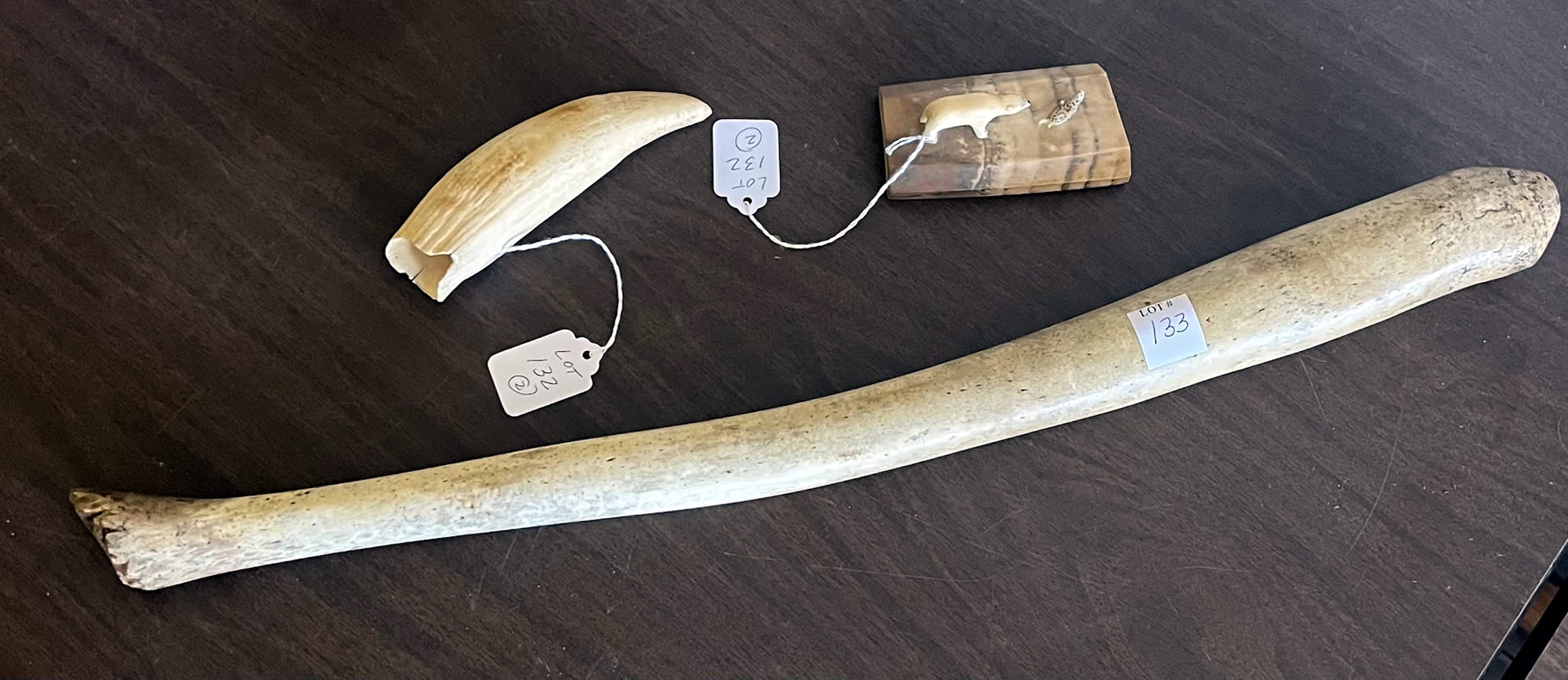 Inuit items including a walrus baculum, or penis bone |