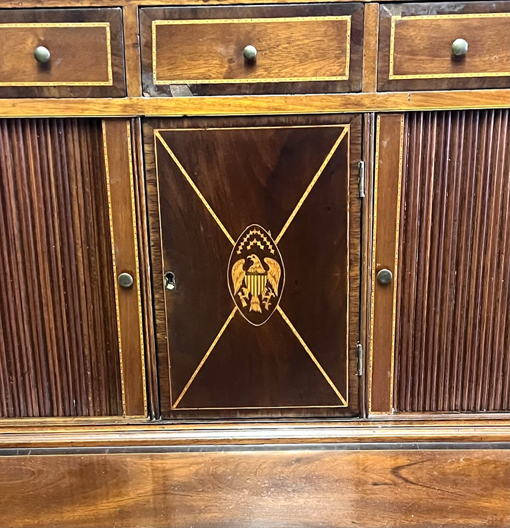 Hook's Federal North Shore Ma. tambour desk with eagle inlay, circa 1800