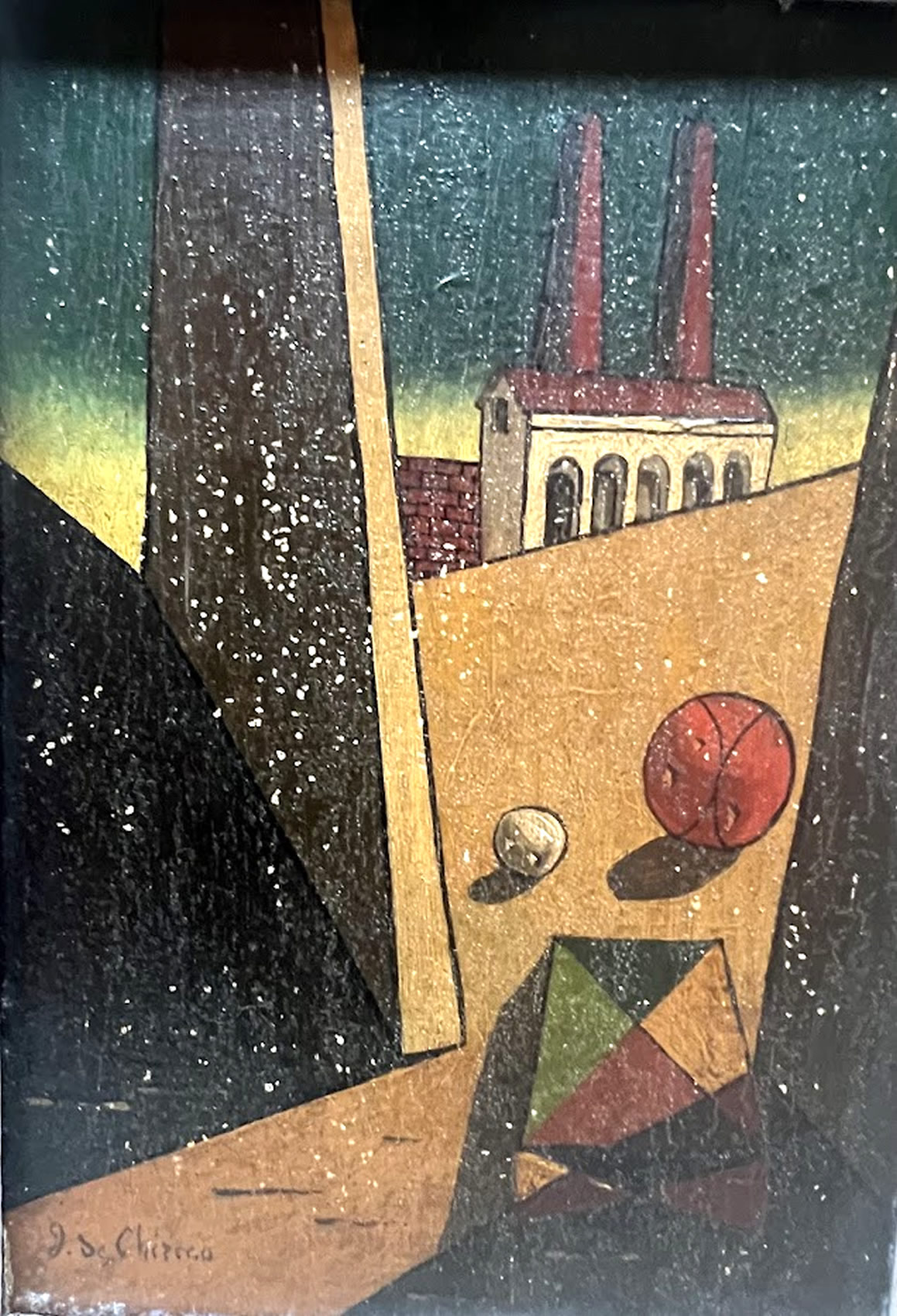 Impotant oil by Giorgio De Chirico (1888-1978), pre- surrealist era, 5in.x7in. image size.