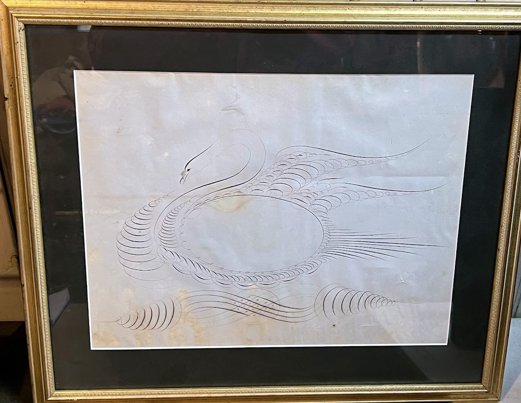 19th c. Calligraphy of a swan, 12in.x16in