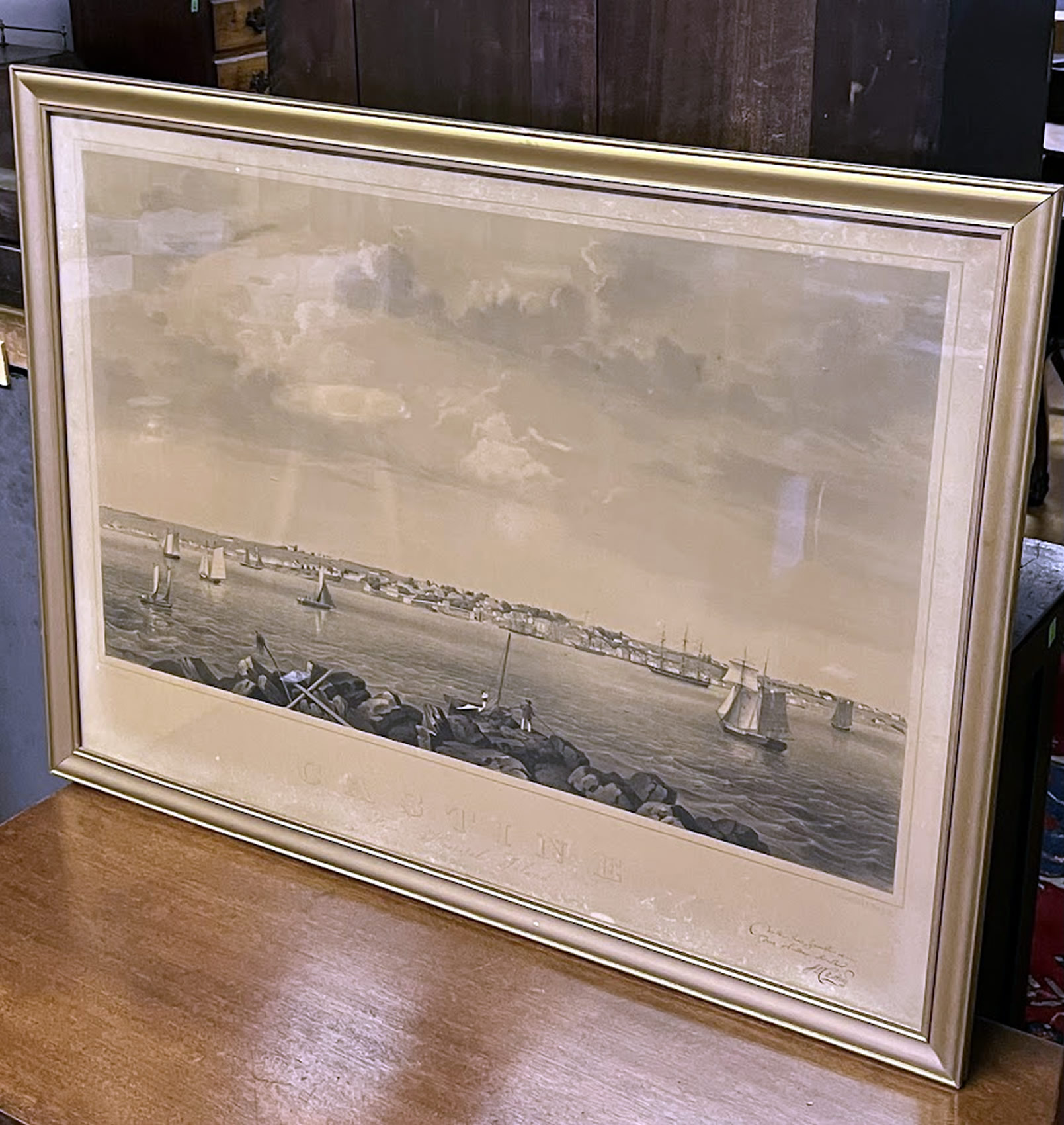 Original lithograph, (A view of Castine from Hospital Island) by Fitz Henry Lane, 1855, 26x35in.