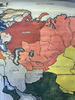Rare hand painted roll-up map of the world, 28in.x34in.