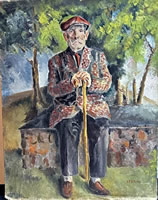 Folk Art painting of old gentleman sitting in the park, signed Sterling, 14in.x18in. |