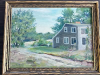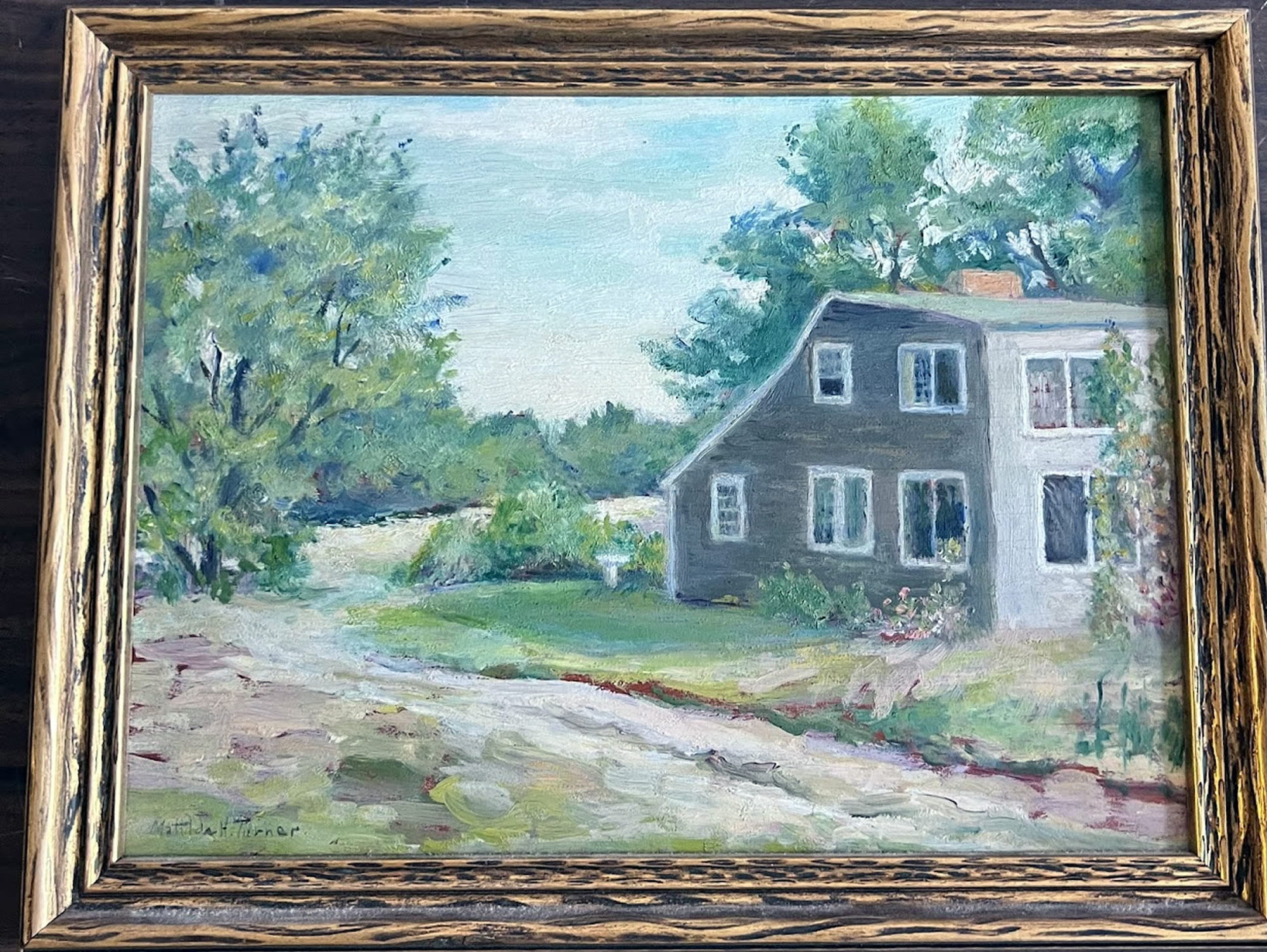 Oil by Mattilda H. Turner, b.1869, Annisquam, Ma. cottage, 9in.x12in.