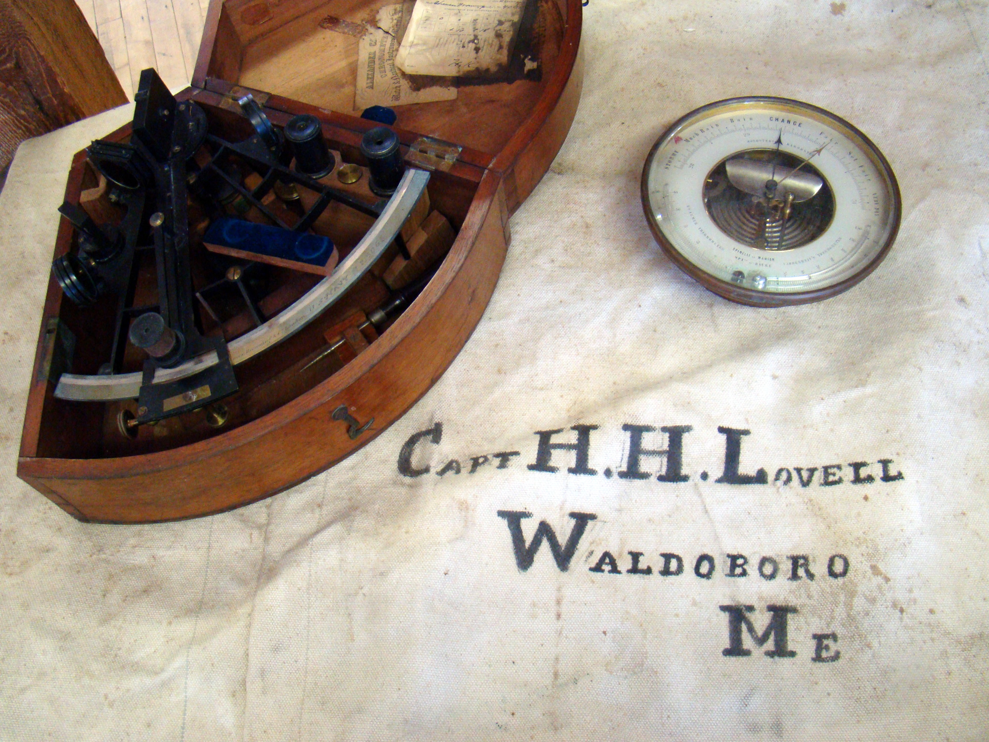 barometer and sea bag belonging to Capt. H. H. Lovell,
