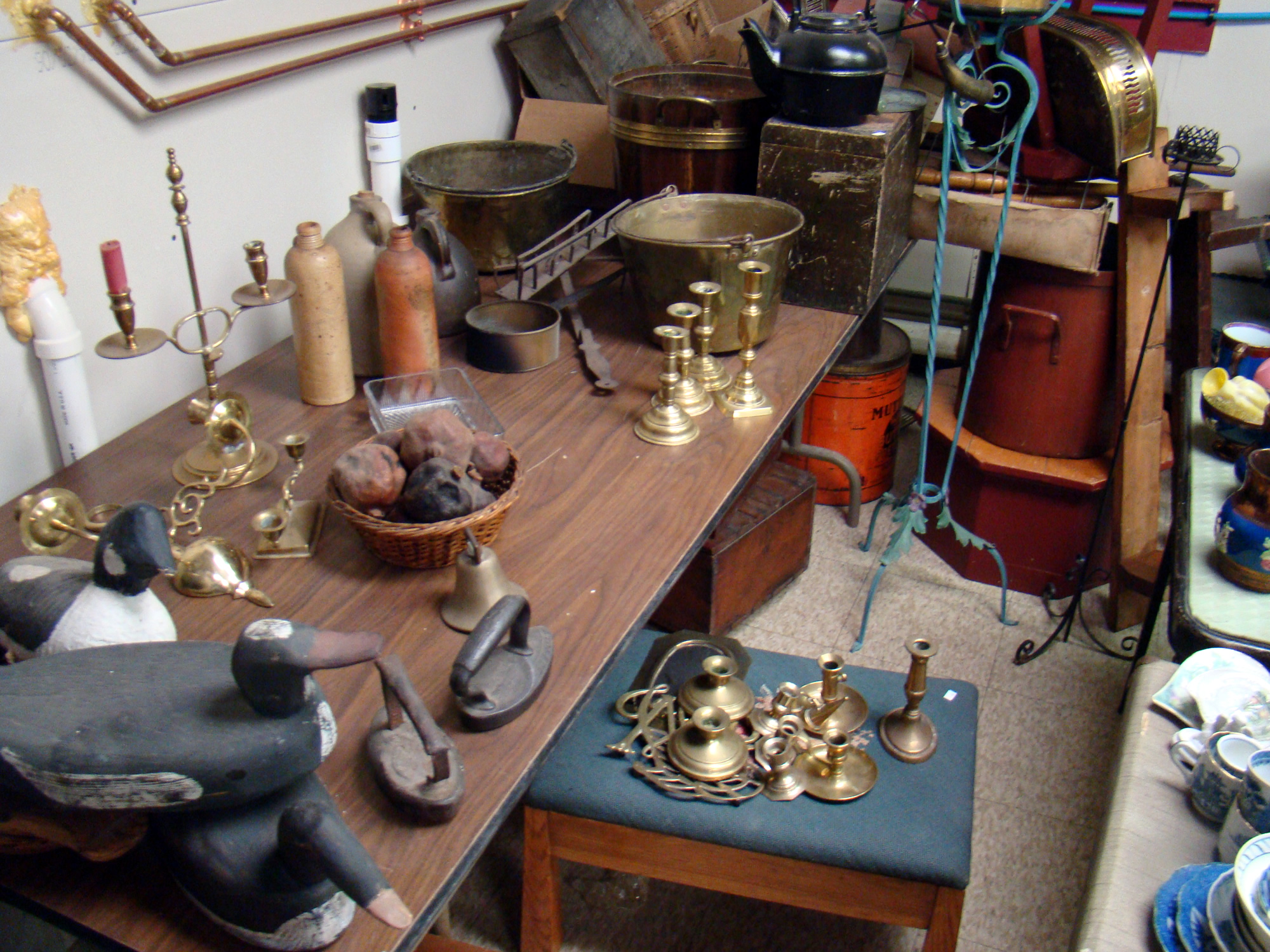 with copper, brass candlesticks, etc. Also 50+ box