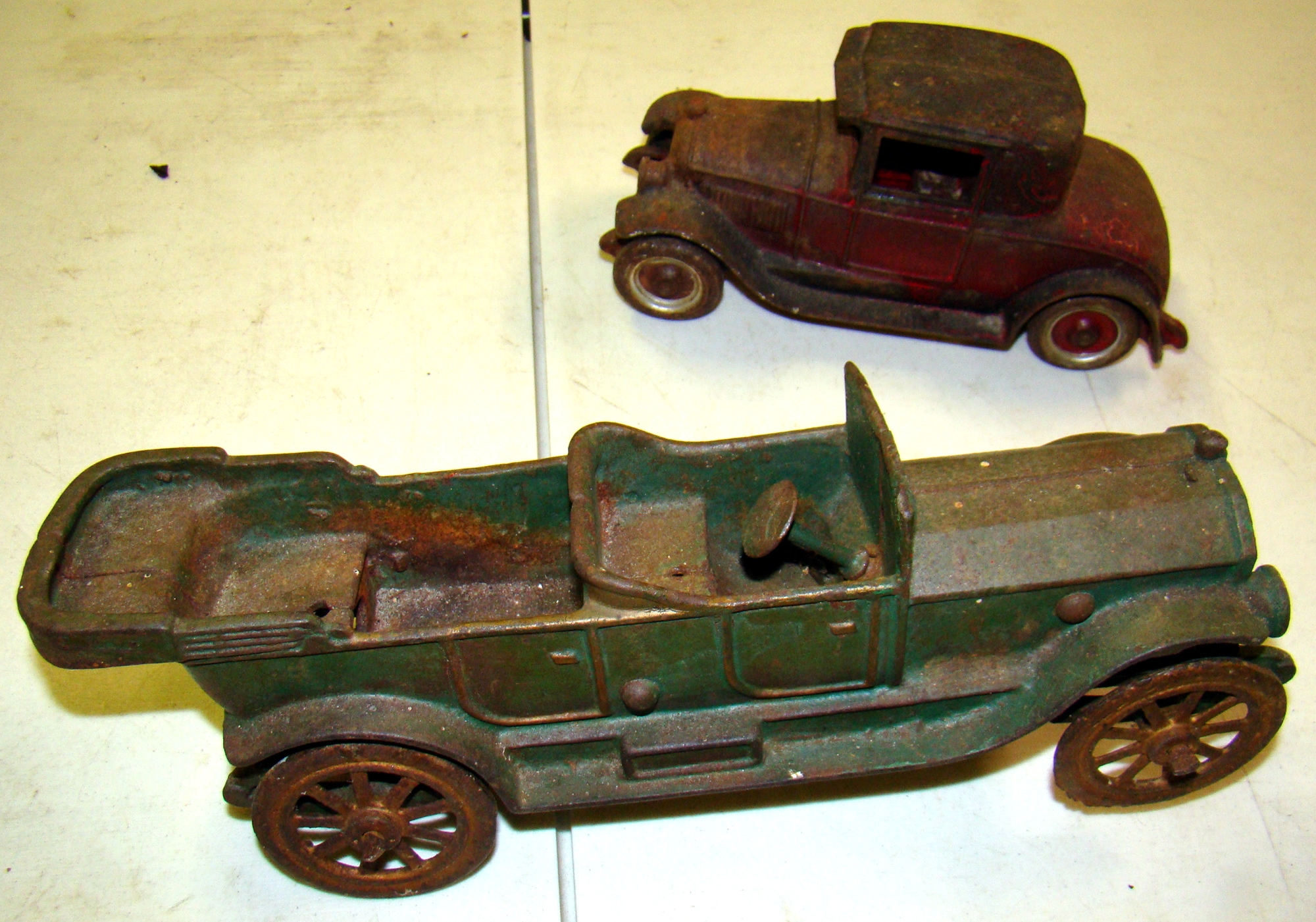 two (2) cast iron toy cars, “as is”; Arts and Crafts