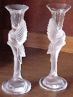 St. Lambert. Pair of 9" French Faberge dove candlesticks,