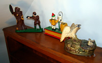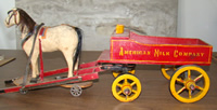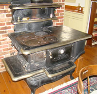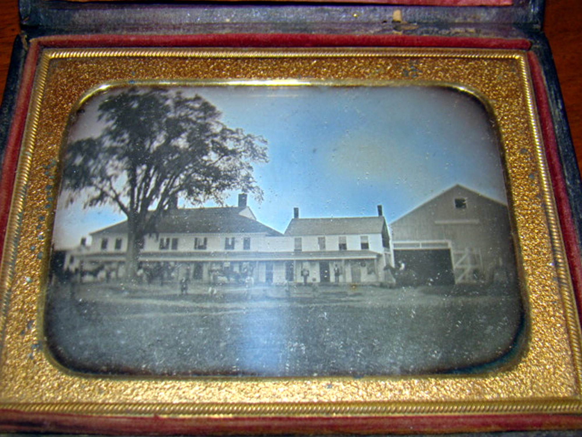 Rare half plate daguerreotype of Jenks Tavern in Spencer, Mass., 4-1/4" x 5-1/2" in gutta-percha frame; another quarter plate daguerreotype of Jenks Tavern in original cloth case; Jenks Tavern was famous for George Washington staying there when he toured New England in 1789. Washington commented in his diary about "Jenks keeps a pretty good tavern". Both images are directly from the William C. Watson family. Watson was the last owner of the tavern that burned in 1868; Silas Hoadley Grandfather clock fresh from a Vinalhaven home; "Home Clarion" black iron kitchen cookstove, all original with water tank; 19th c. sheet metal running horse weathervane; American Milk Company wooden toy wagon with horse; roadside sign in yellow paint, 12" x 6', "9 Miles to Studley's"; wooden plaque with whale by Bernard Langlais; carved whalebone Eskimo with ivory faces, 10" tall; scrimshaw whale's tooth with ship; two large tray lots of stereo-view cards; Maine Central Railroad covered firkin in old green paint; rare oversized Bennington doorknob; early 19th c. dovetailed knife box; 19th c. desk box with ink bottles; "Crowley's Needles" spool cabinet with two drawers; rare 19th c. wire mouse trap; Lots more!!!