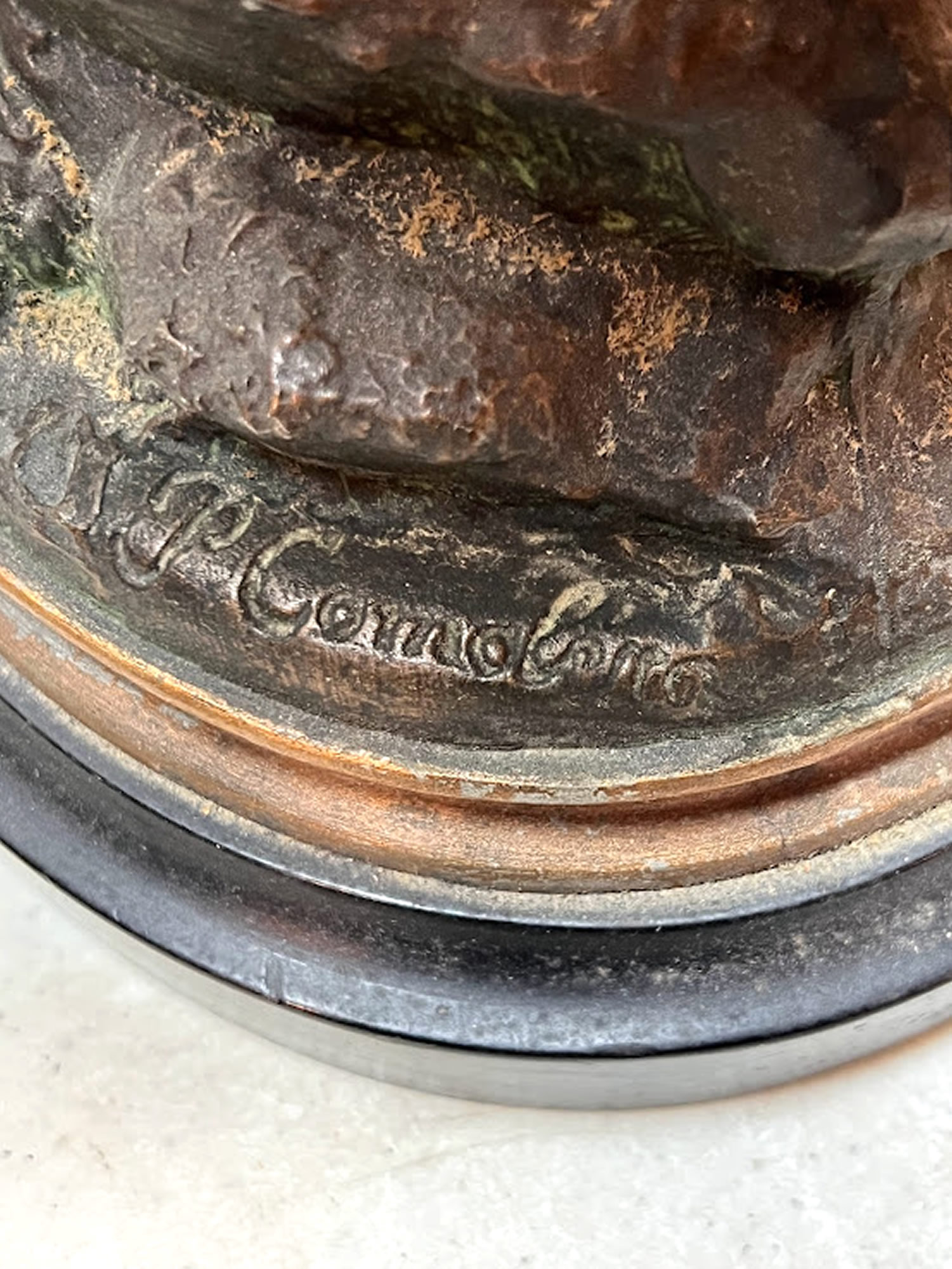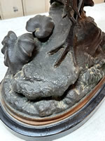 | Bronze crane holding a frog by Paul Comolera, 1818-1897, 22in. |