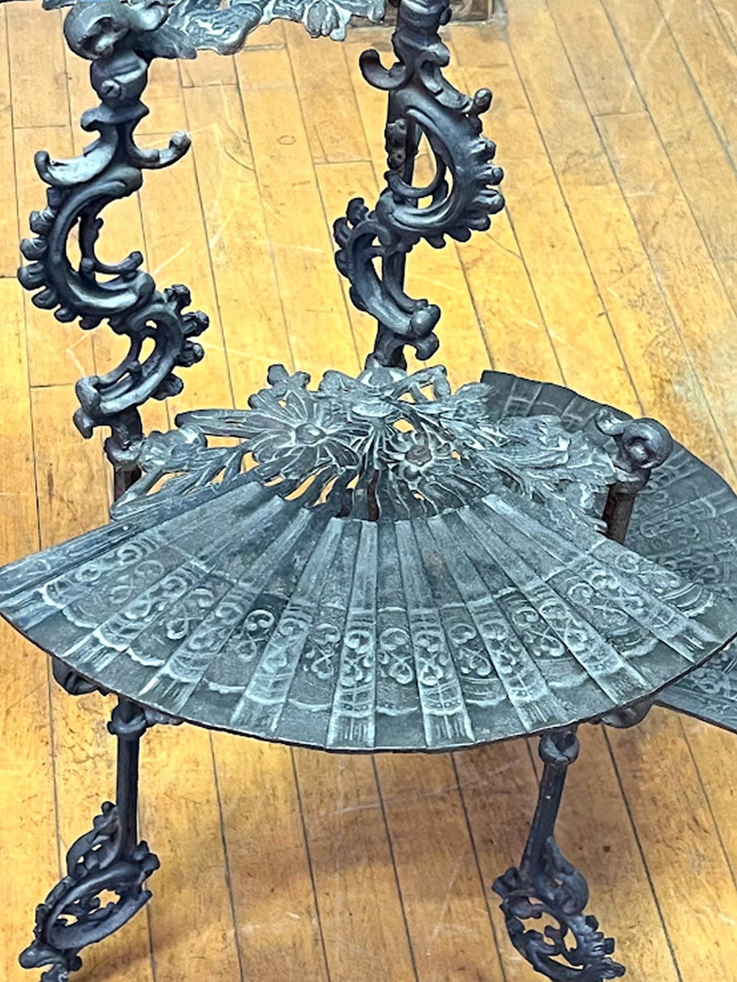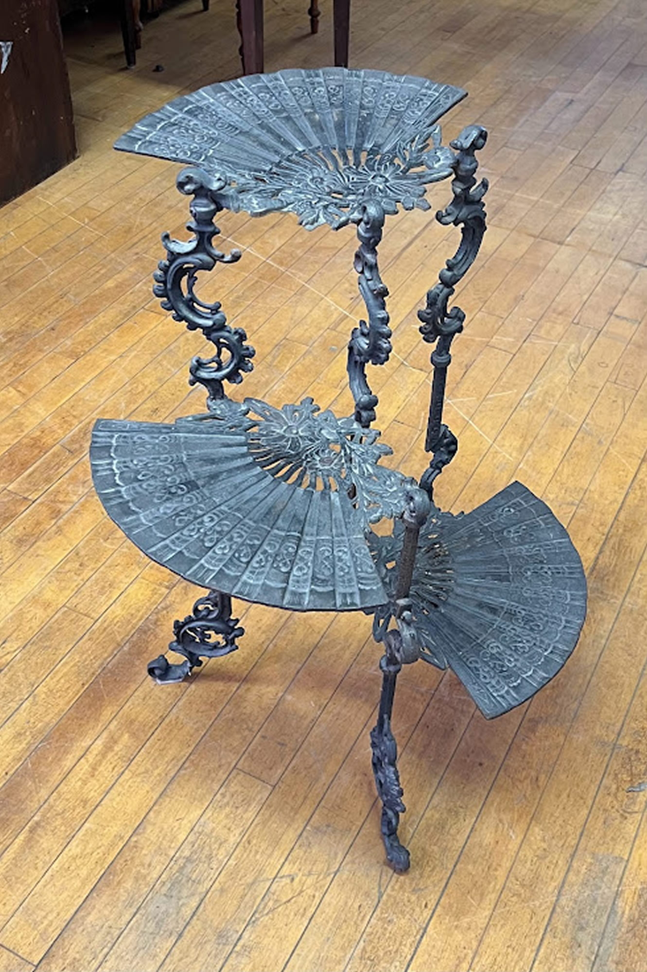 Unusual cast iron plant stand with fan shelves |