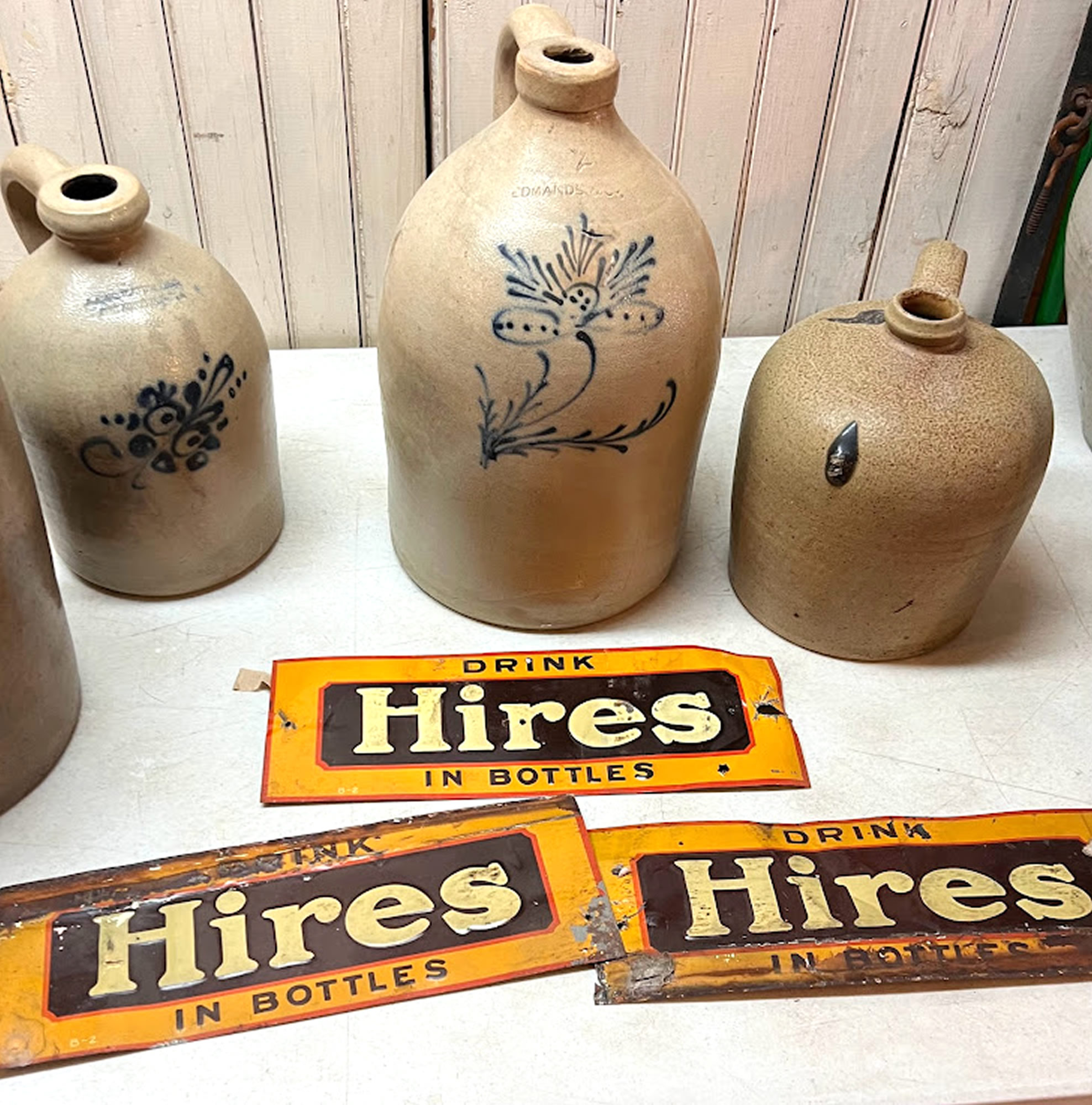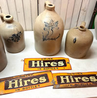 More stoneware and vintage Hires root beer signs |