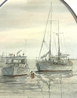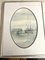 Watercolor by Carol Shupp Sebold,1939- 2010, titled (Fog Harbor), 8x12in. |
