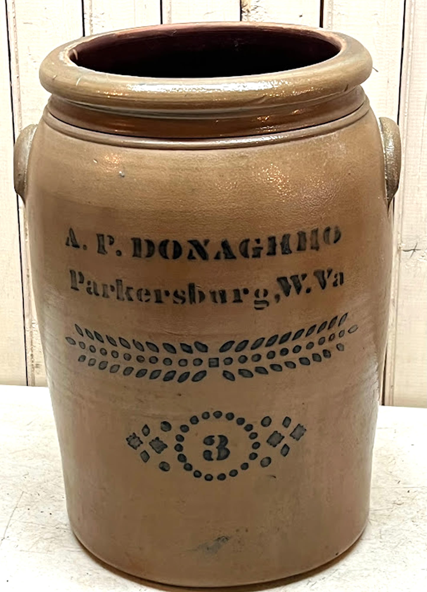 A.P. Donaghho (3) gallon stoneware crock |