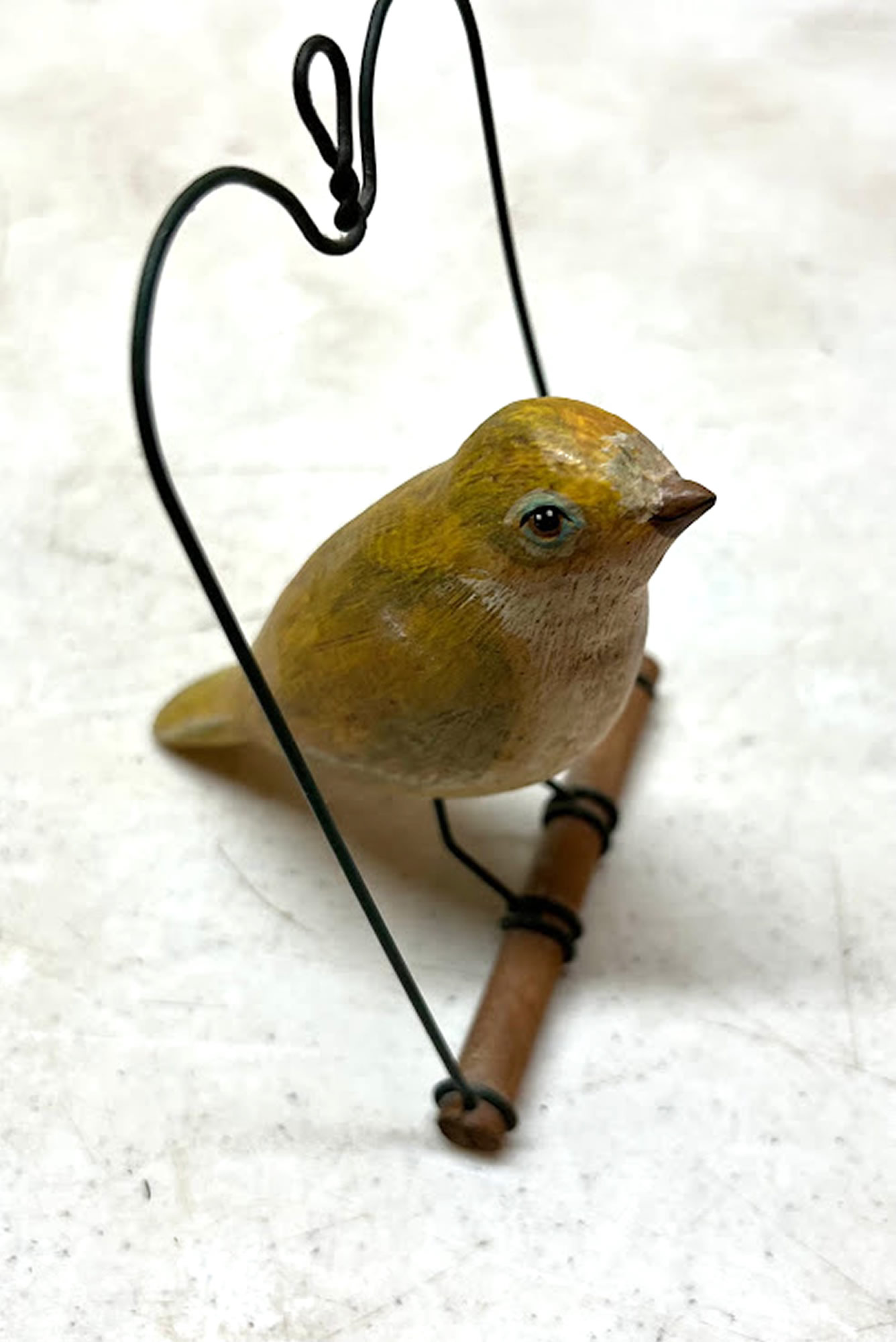 Folk Art carved 4in. bird on a swing |