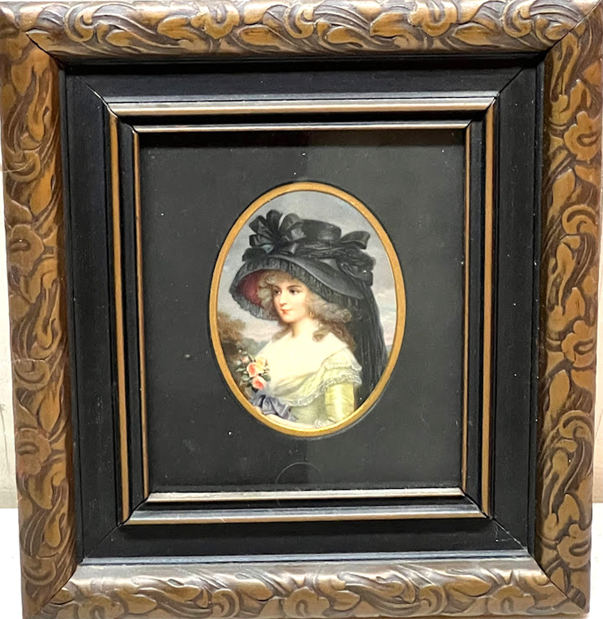 Miniature portrait of young lady with hat, 3x4in. image |