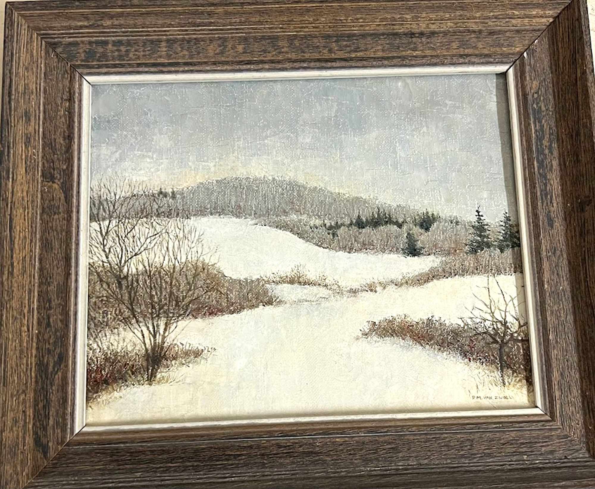 Winter scene oil by Phillippine M. van Zwoll, 1919-2018, 8x10in. |