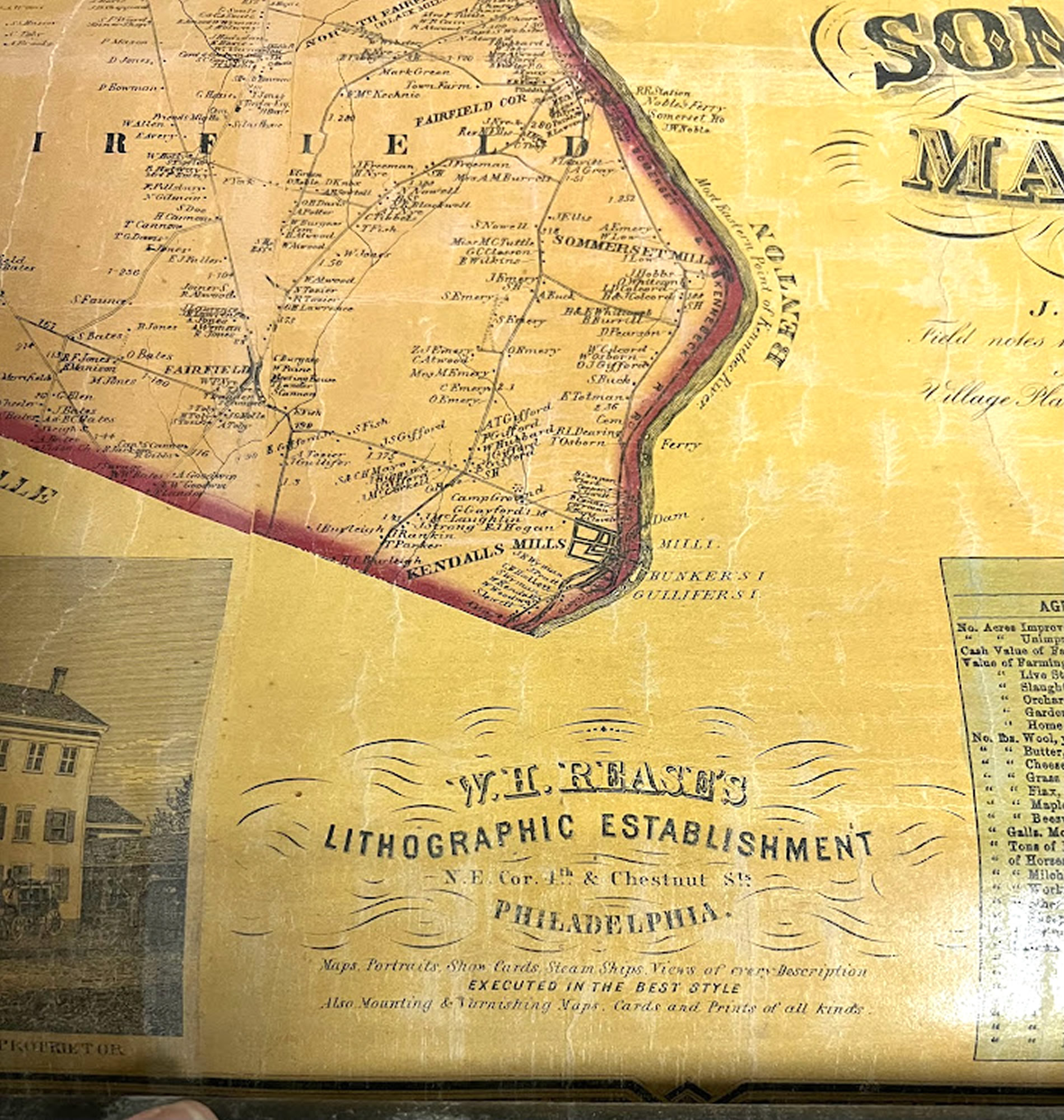 Rare 1860 Maine Samoset County rollup map, |