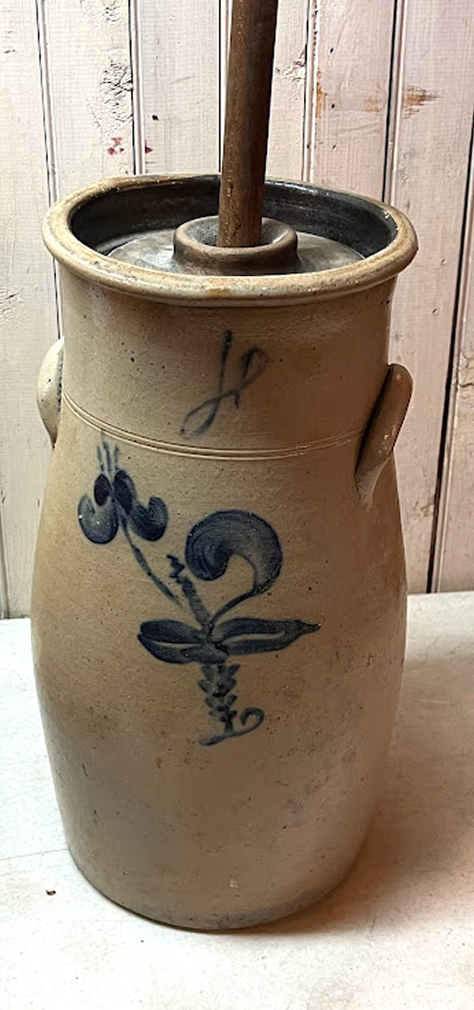 | Glazed stoneware churn, 17in. tall |