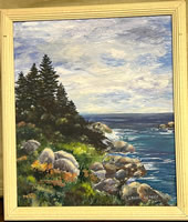 Maine shoreline oil by Laura Legere, 1919-2013, 12x14in. |