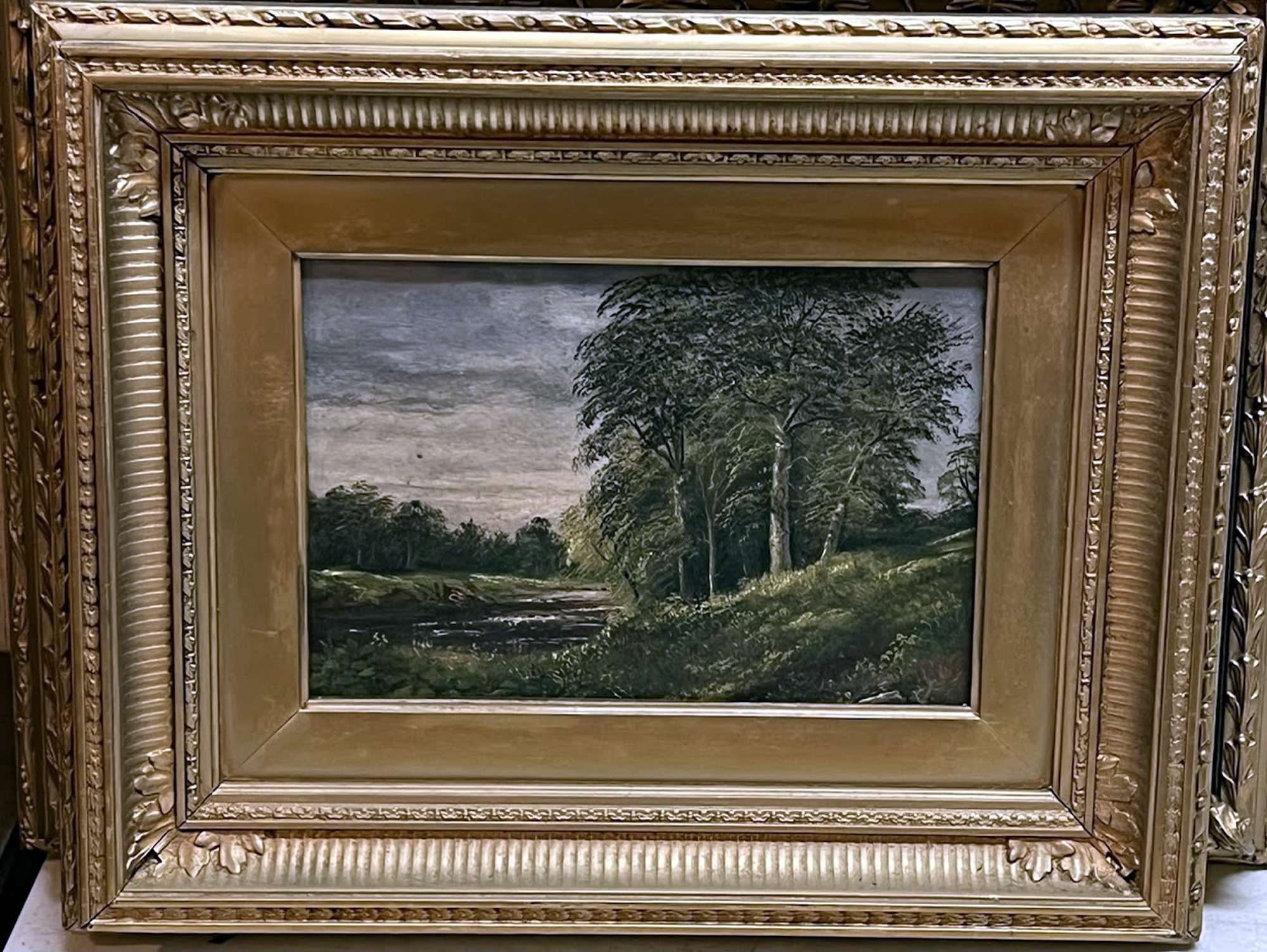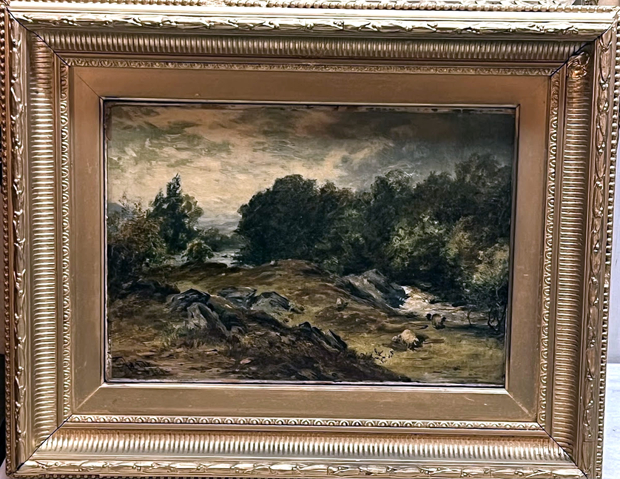 19th c. oil landscape in original gold frame, 14x18in. |