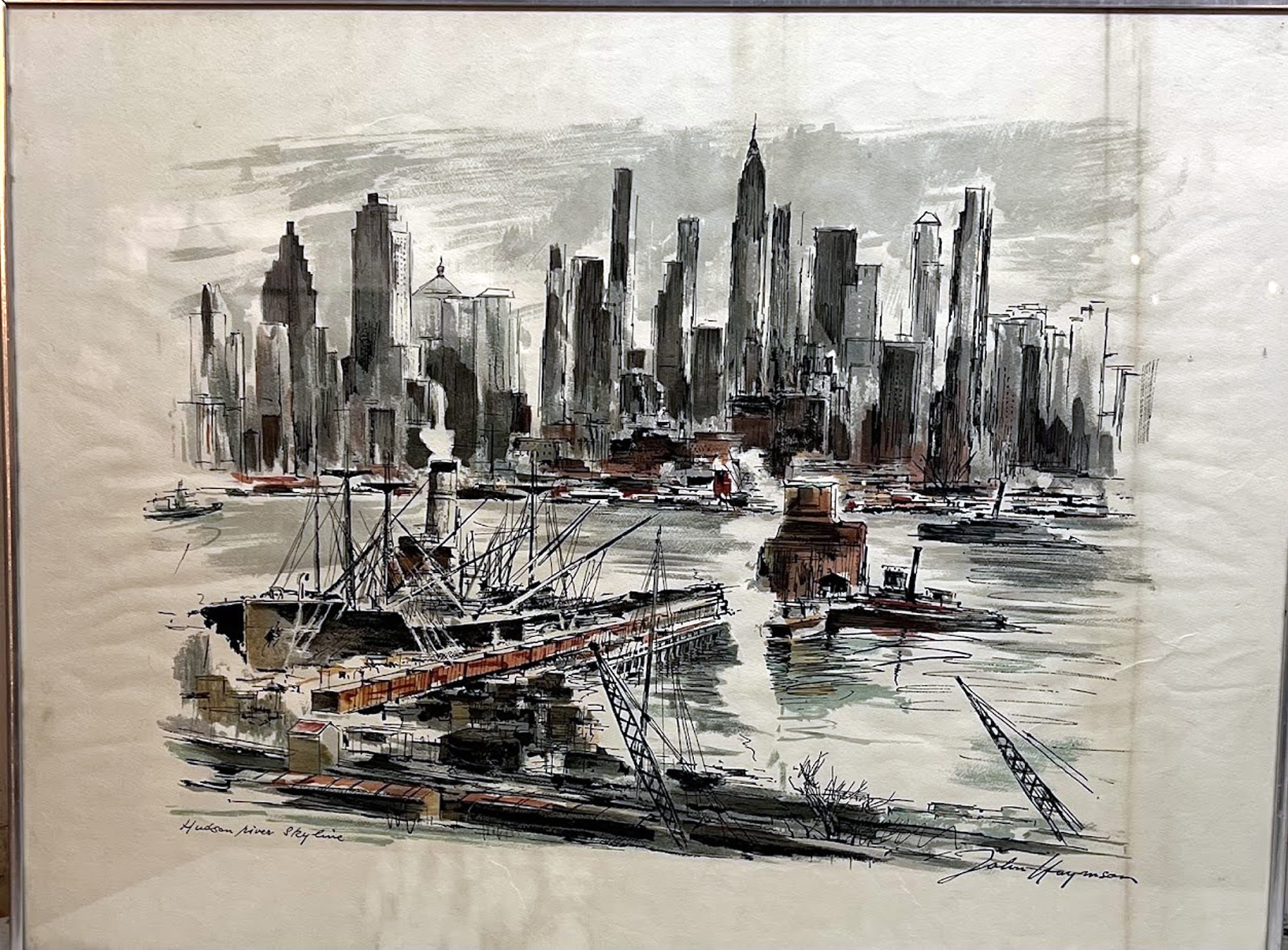 | Watercolor of the Hudson River by John Haymson, b.1903, 20x26in. |