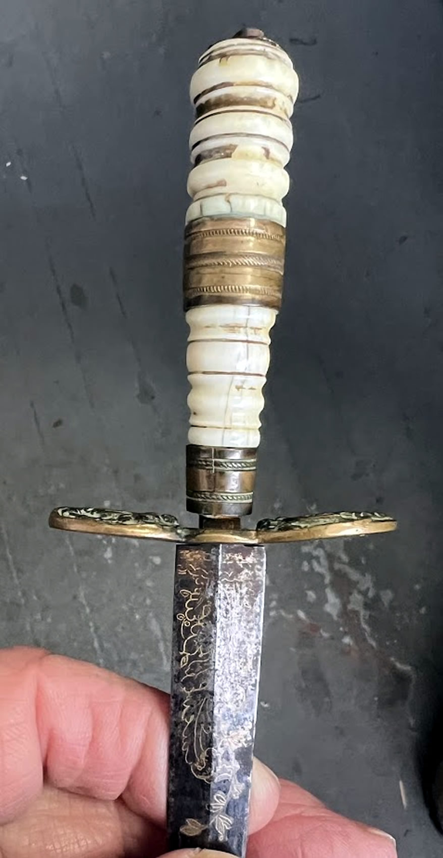 19th c naval dirk with brass scabbard, 13in.