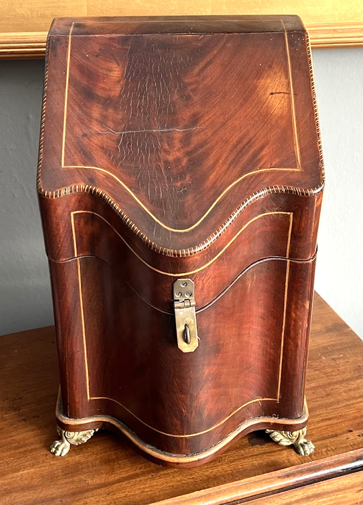 Early mahogany knife box with inlay
