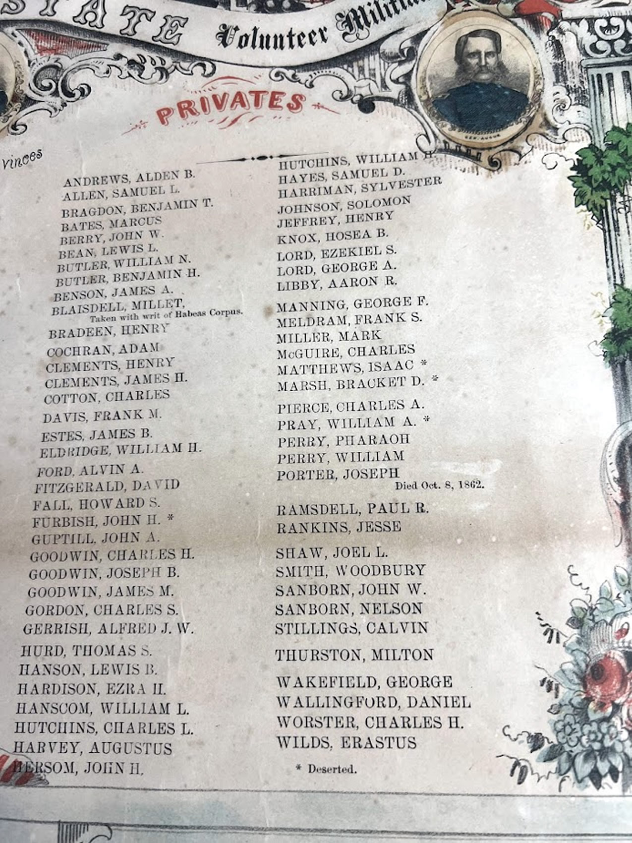 Civil War roster for Co. D, 27th Regiment, 1862