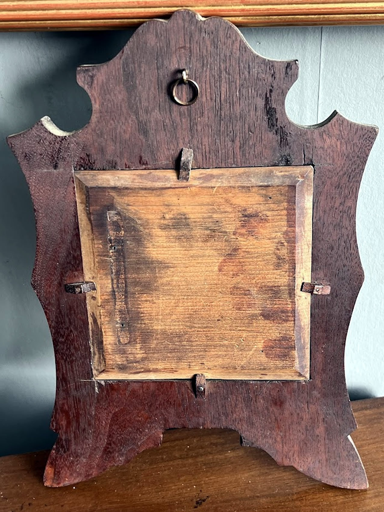 19th c. folk art dresser mirror with chip carving