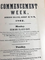 Bowdoin College Commencement Week broadside dated 1862