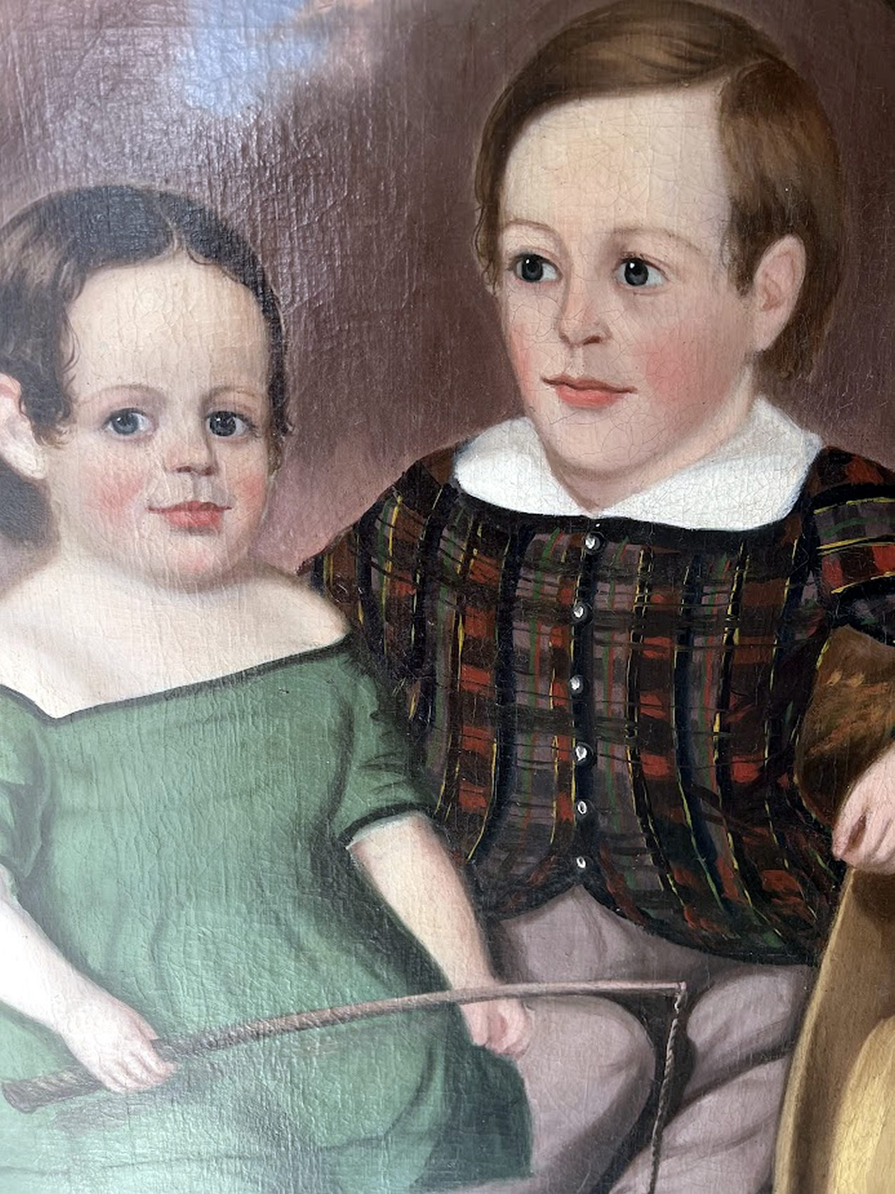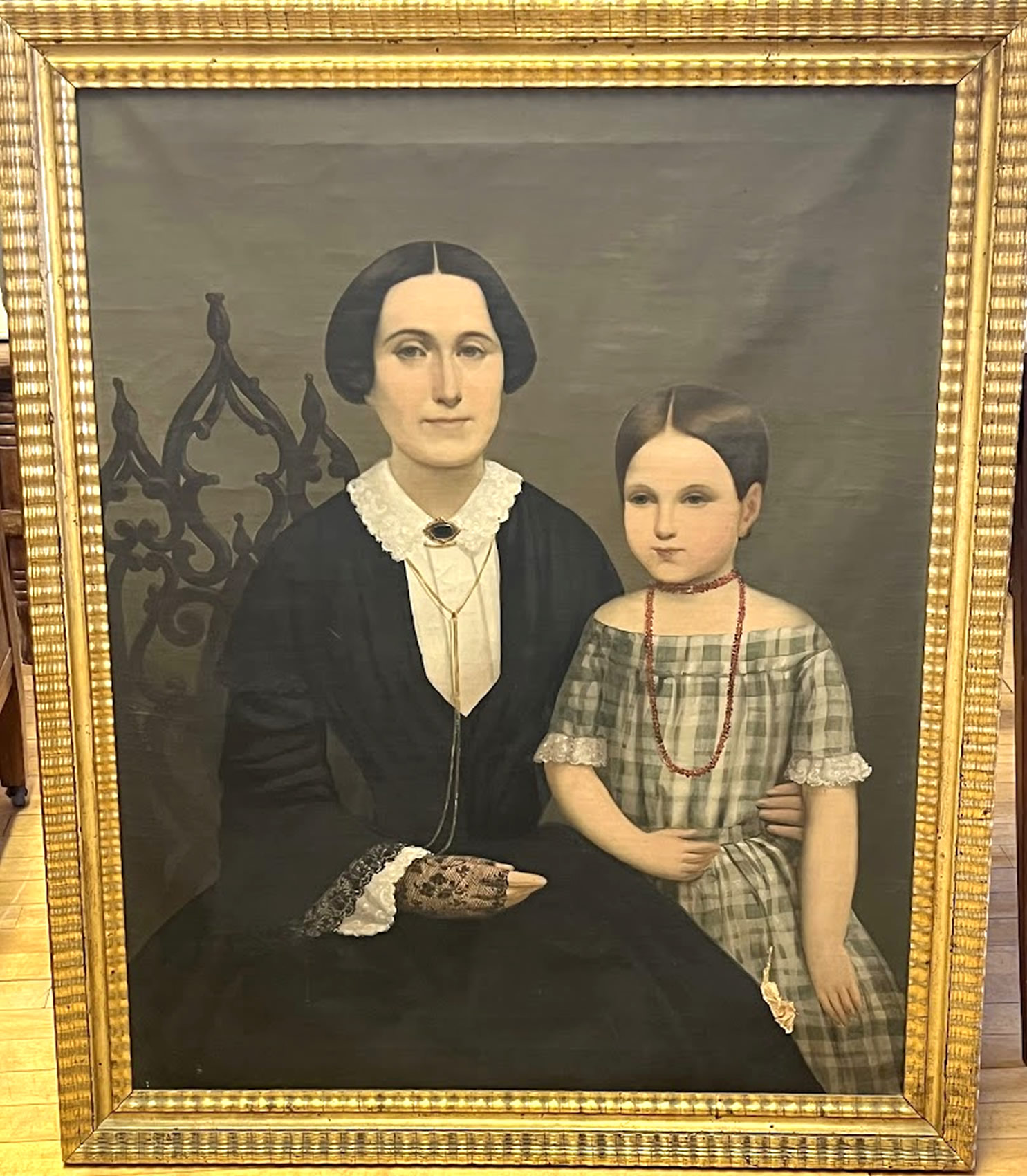 19th c. oil portrait of mother and child, 28x34in. original frame |