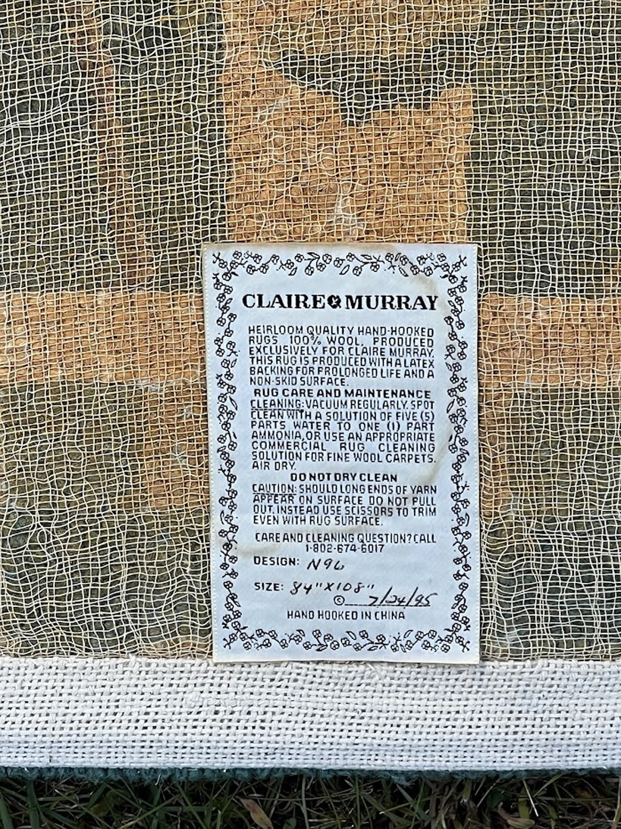 Claire Murray hand hooked carpet, excellent cond. 7'x9'