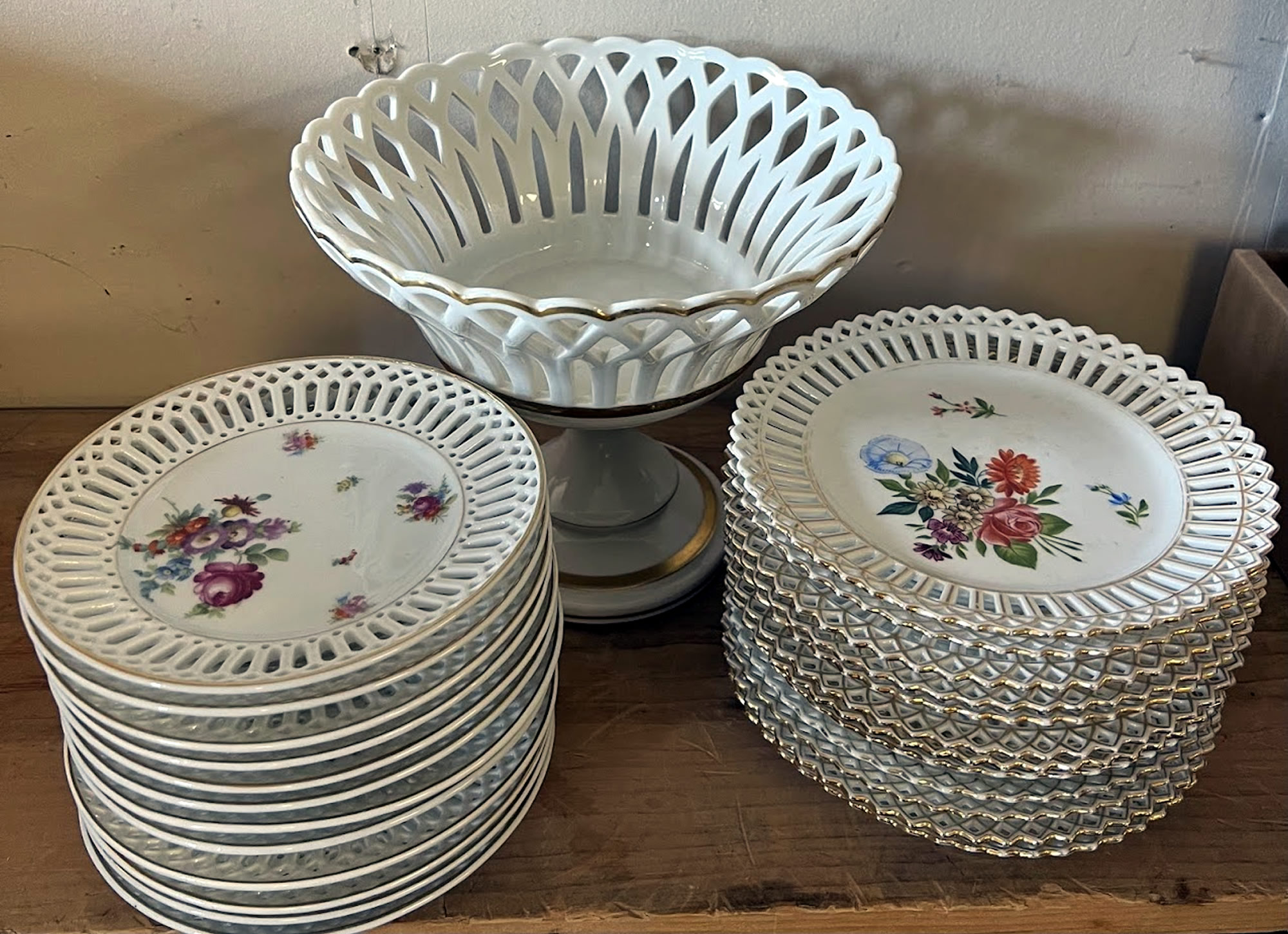 Lot of hand painted articulated Dresden dishes |