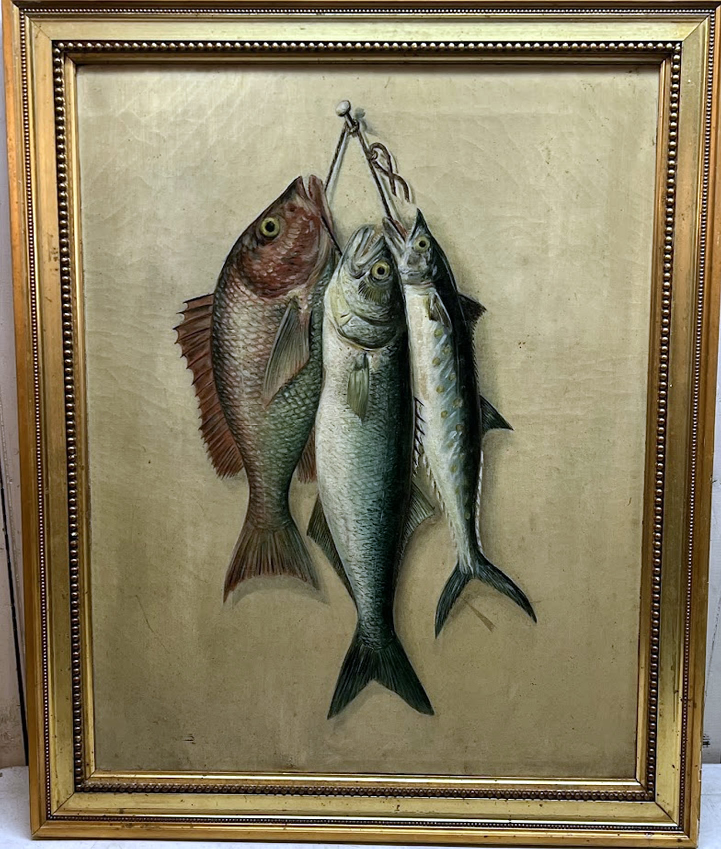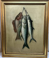 19th c. still life of fish, 19.5x25.5in. |