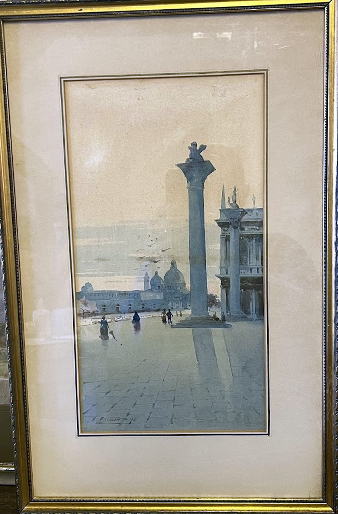 Watercolor in gold frame, unsigned 8x10in. image