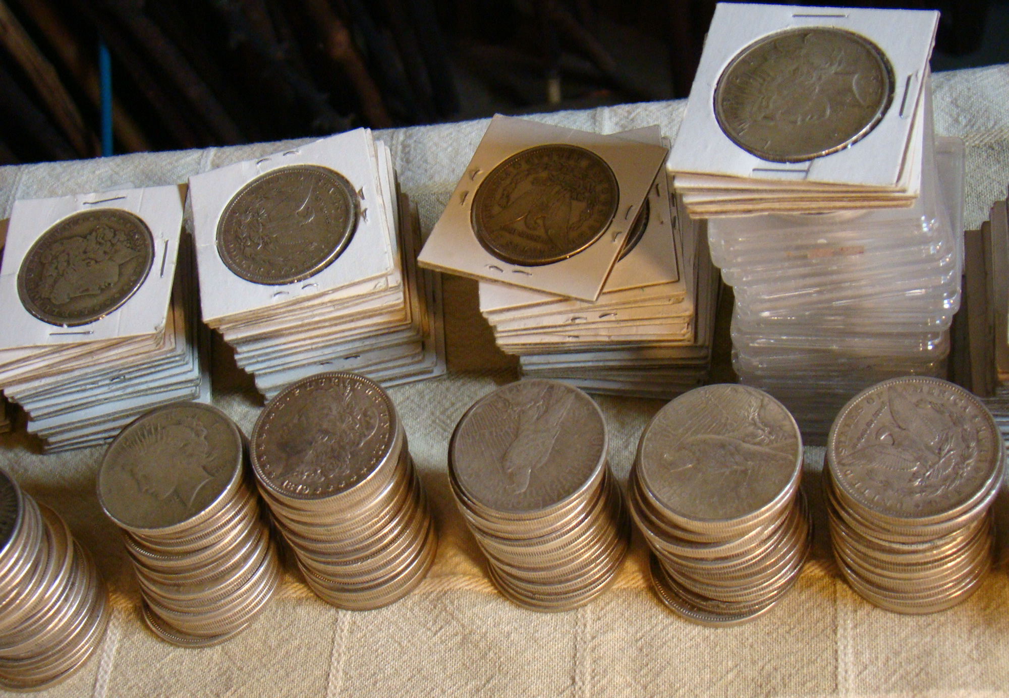 silver dollars, some uncirculated standing Liberty and Franklin
