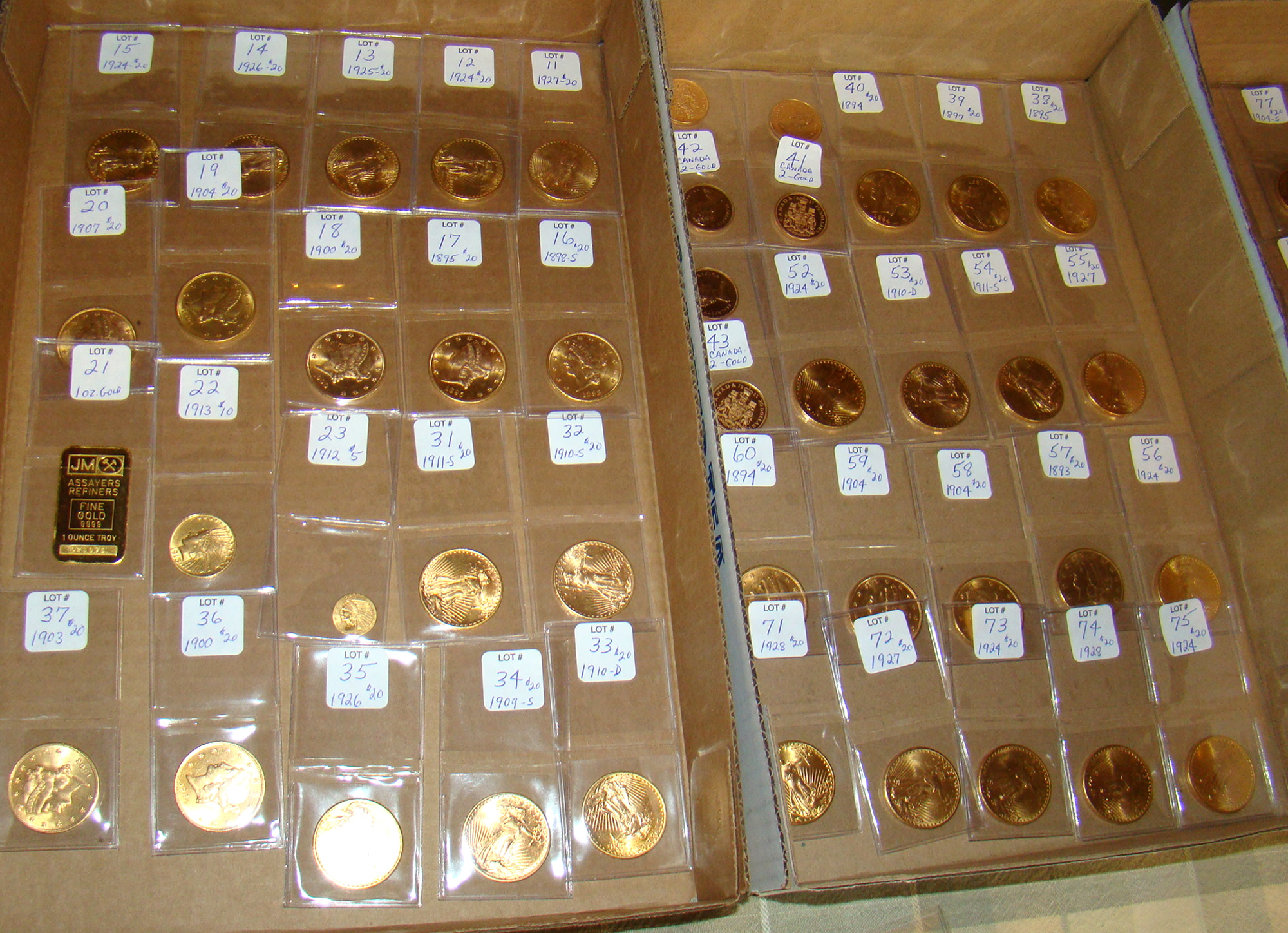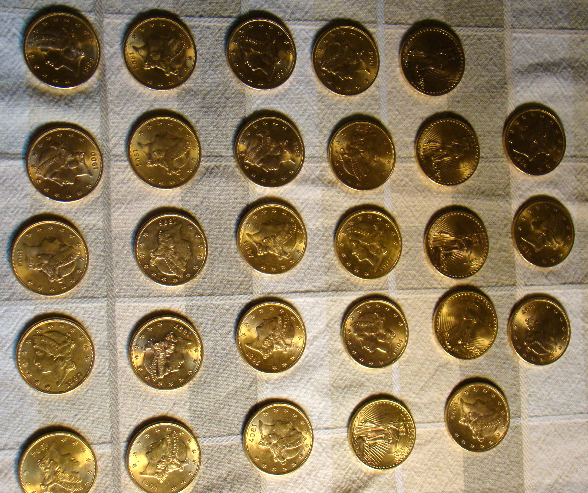 $20 gold coins, dates include: 1898-S, 1895, 1900,