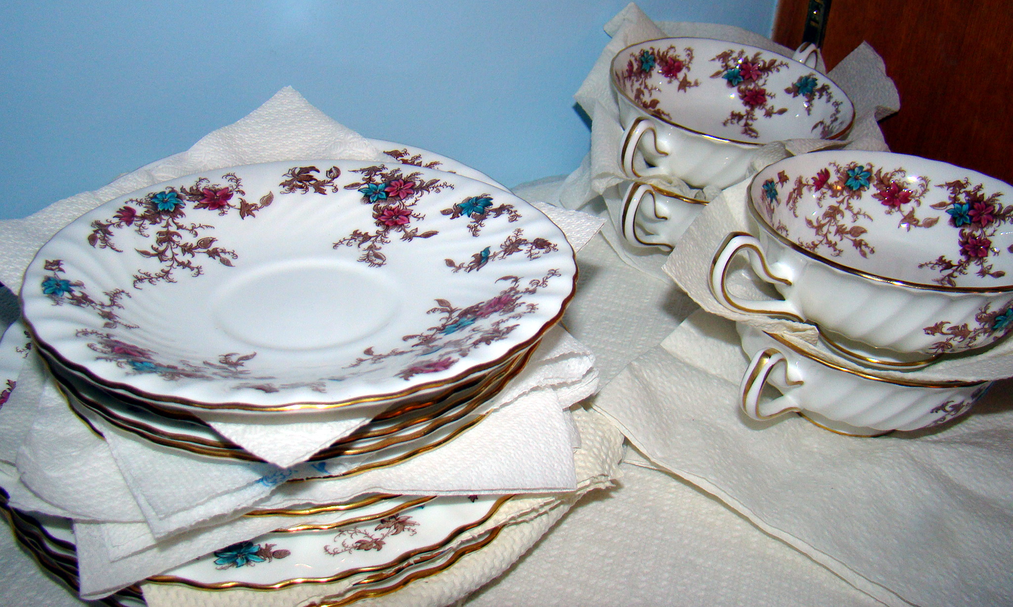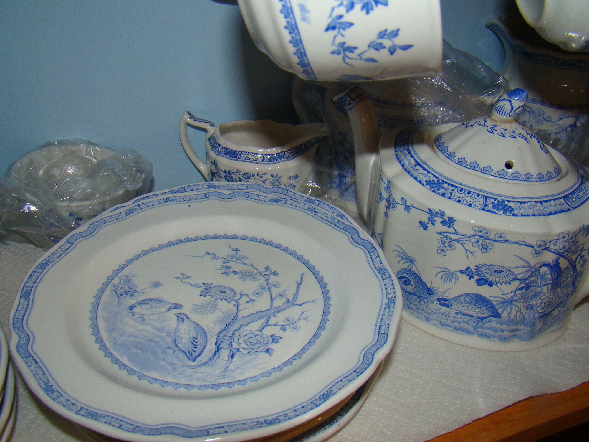 partial set of Furnivals quail china; Wedgwood, cut glass, Satsuma